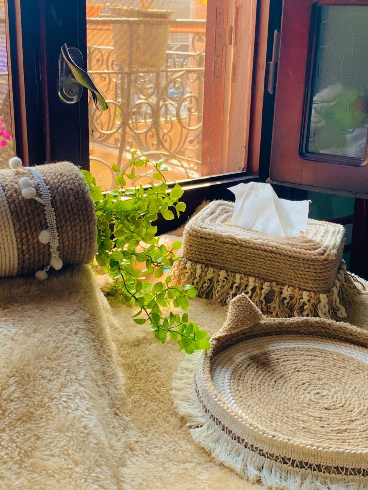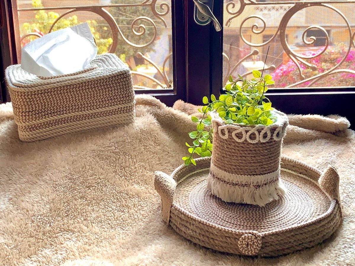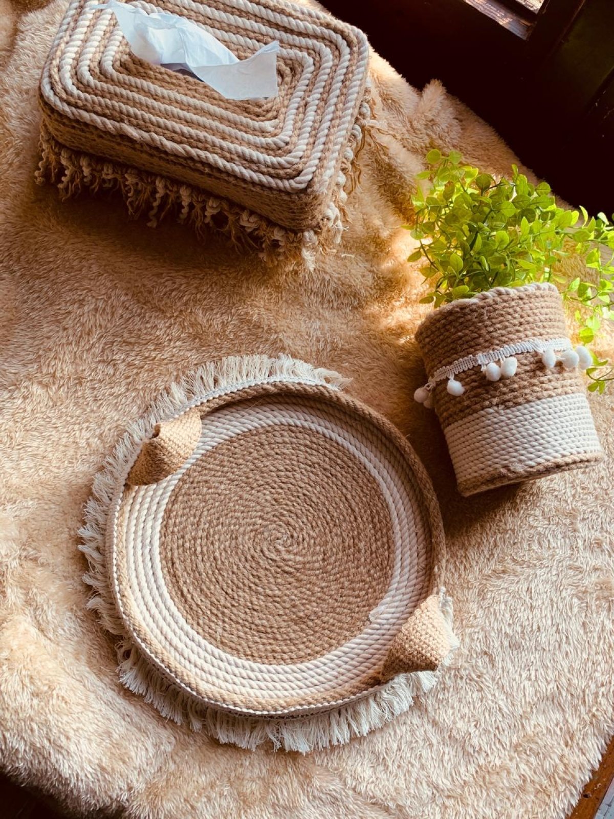 كفر المناديل ارتفاع ١١ عرض ١٤ منظم ارتفاع ١٣سم وقطره ١٠سم صينية مقاس ٢٥سم