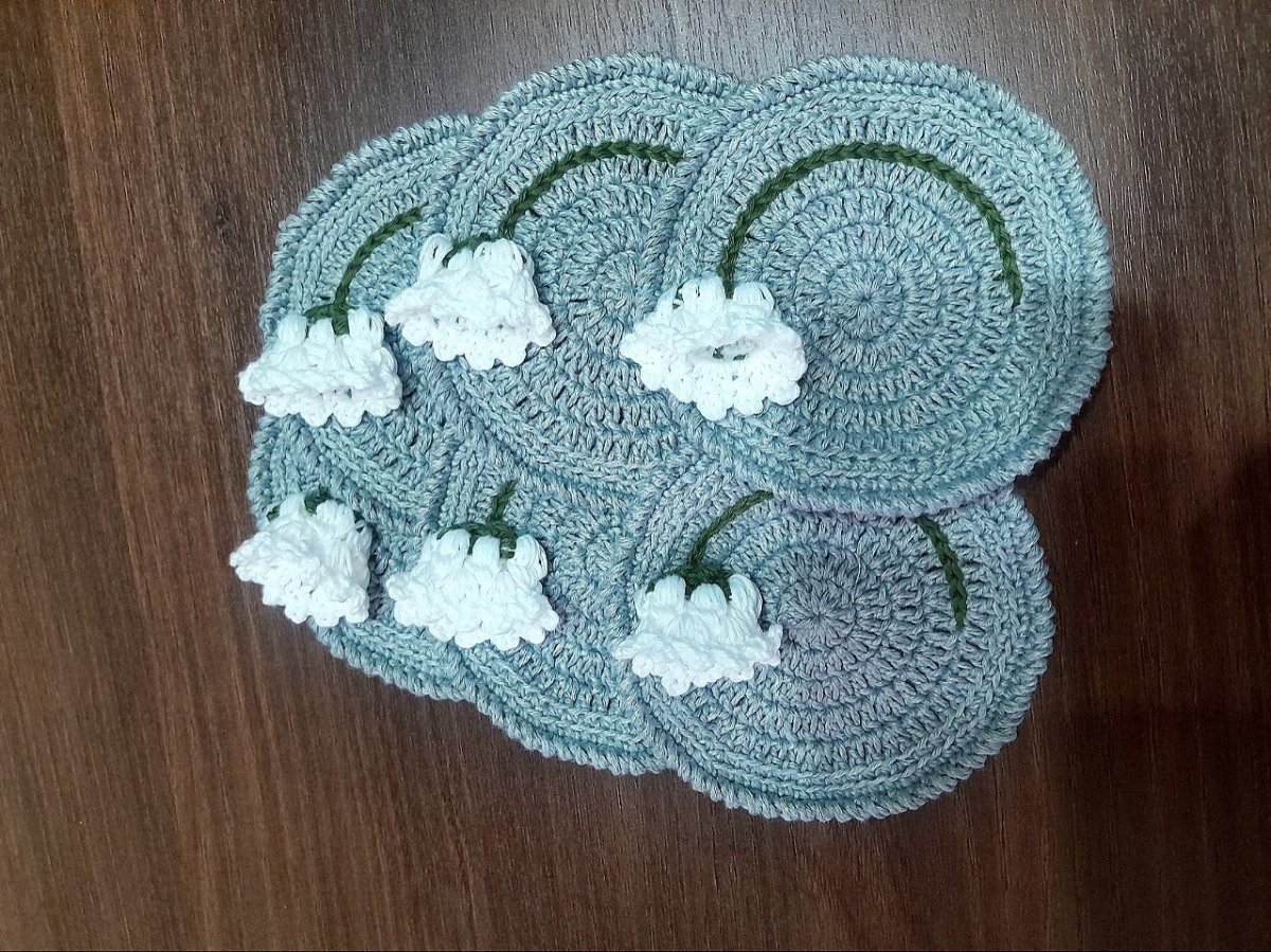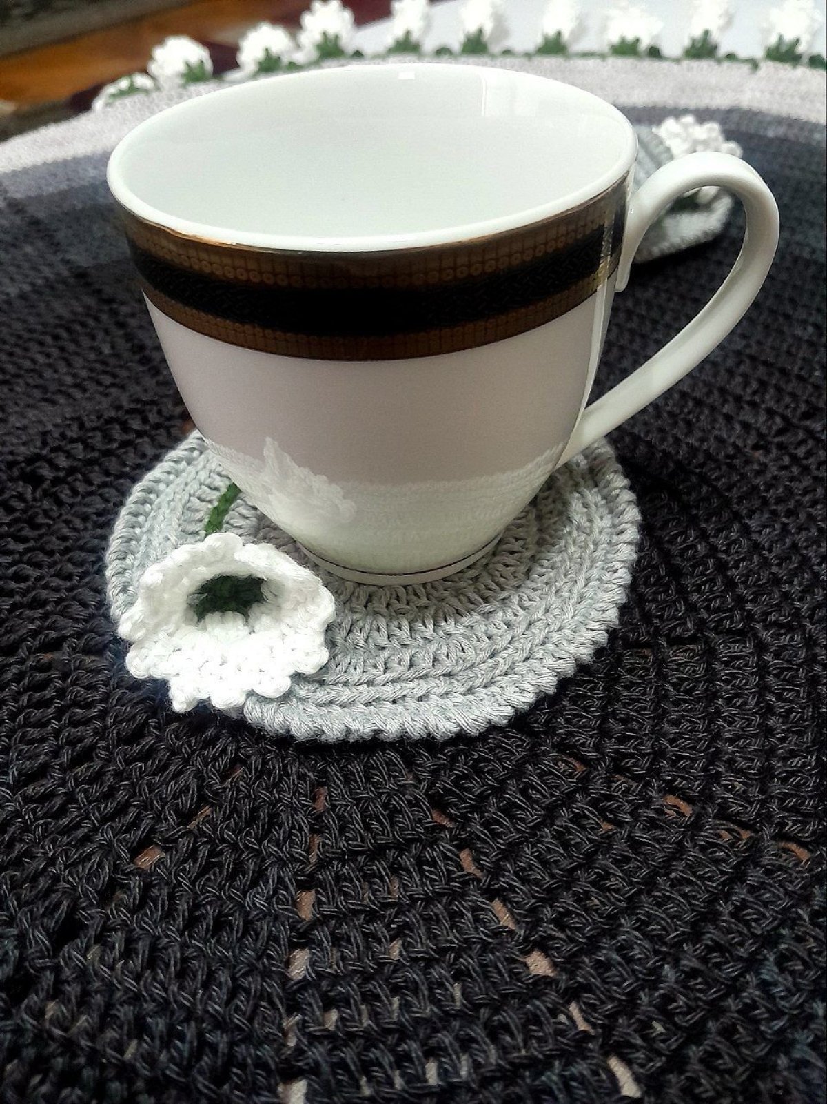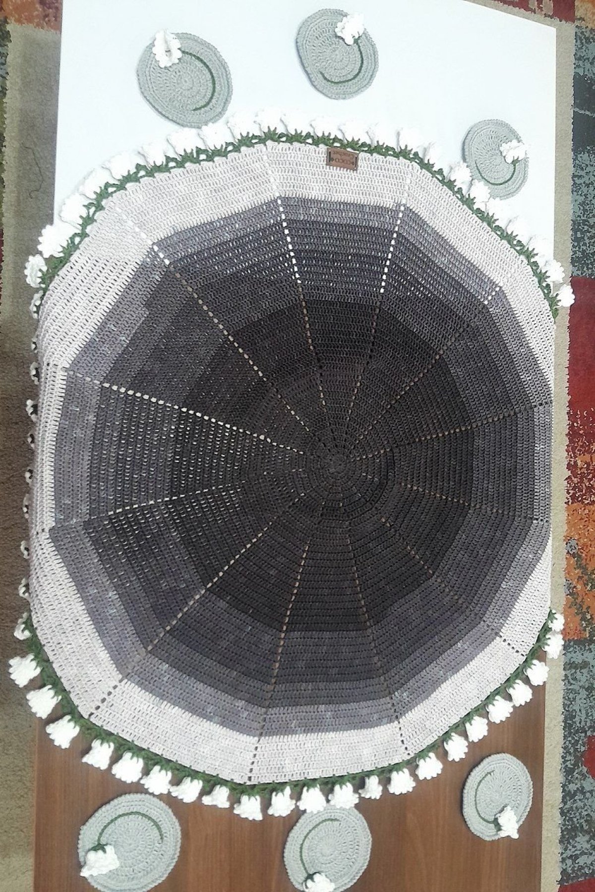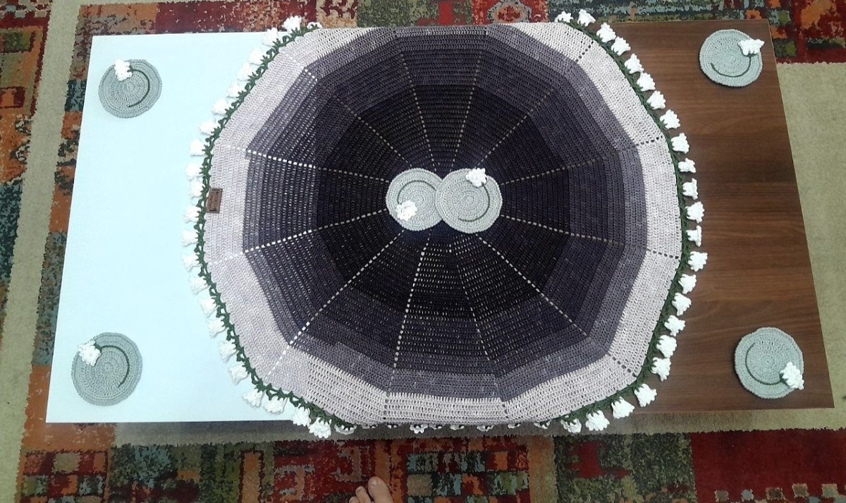 مفرش ترابيزة مصنوع يدوي من خيوط قطن ناعمة وخفيفة وقوية جداا متاح تغيير اللون حسب الرغبة مقاس ١.٥ × ١.٥ متر مميز وترندي ويأتي معه ٦ كوستر للاكواب