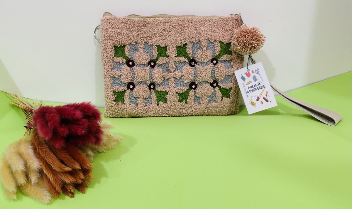 حقيبه كلاتش مصنوعه يدويا ، مقاس 20*30، بحزام من نفس نوع القماش ، مبطنه بقماش من الداخل و بها جيوب داخليه .