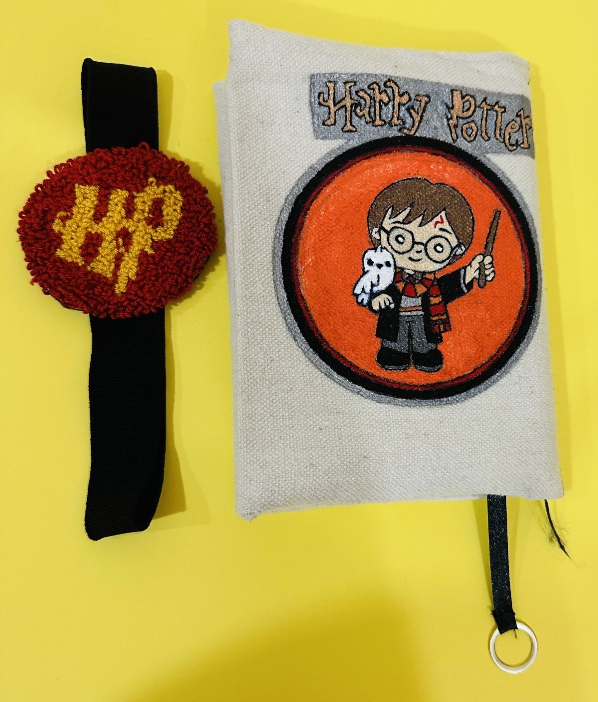 غطاء كتاب من القماش ، مرسوم يدويا.