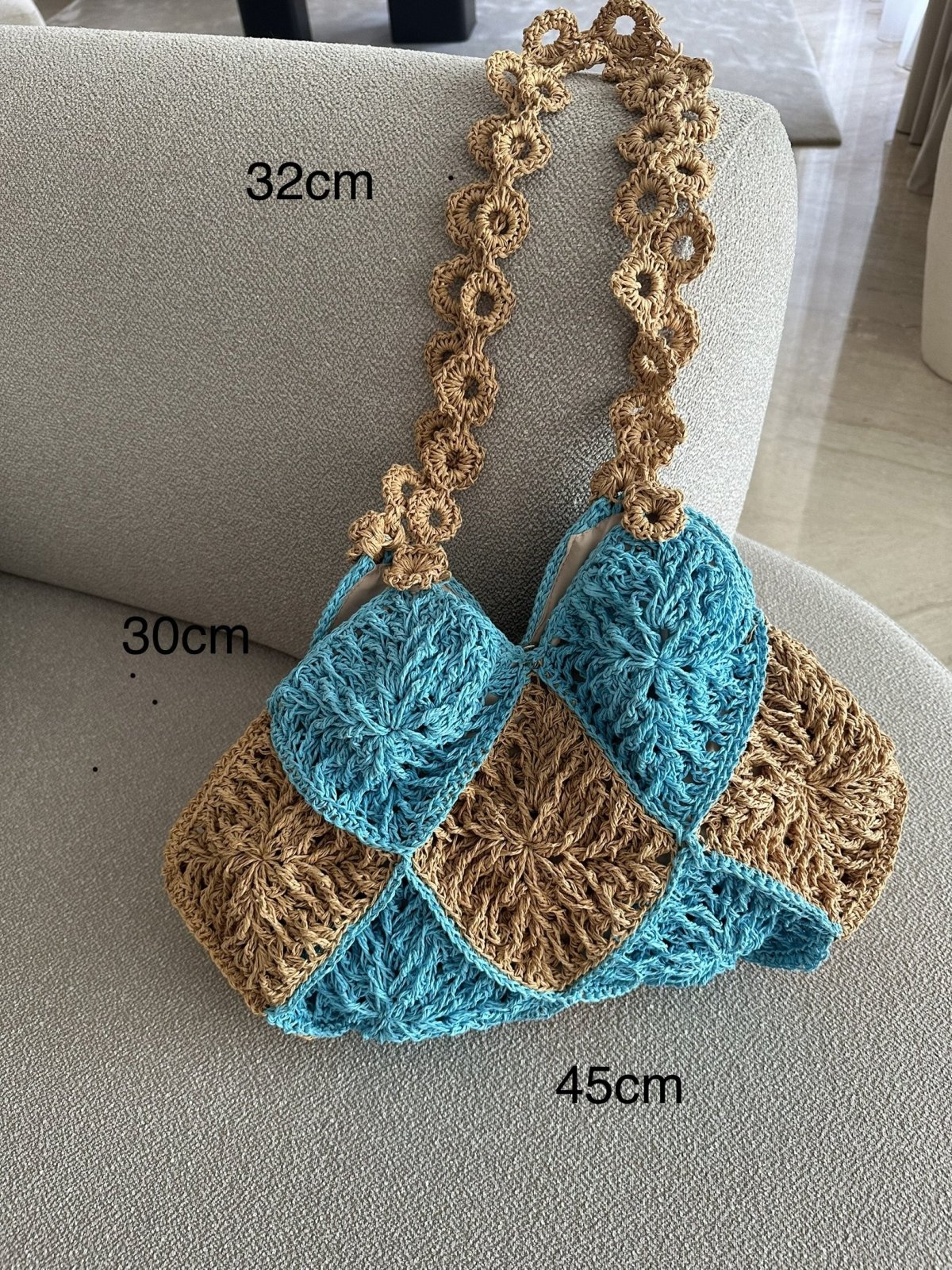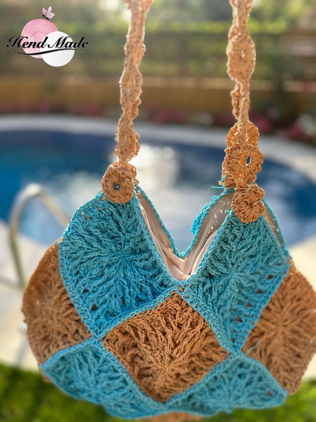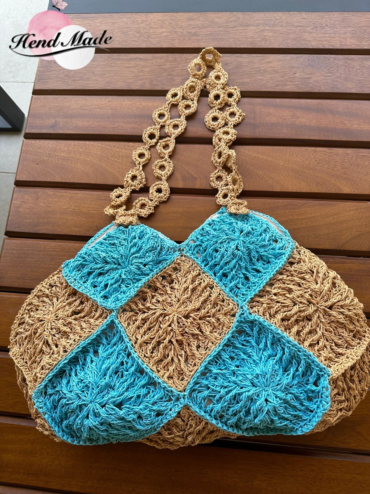 شنطة كروشيه ملونه من خيط الرافيا مناسبه للصيف مقاس ٤٥*٣٠