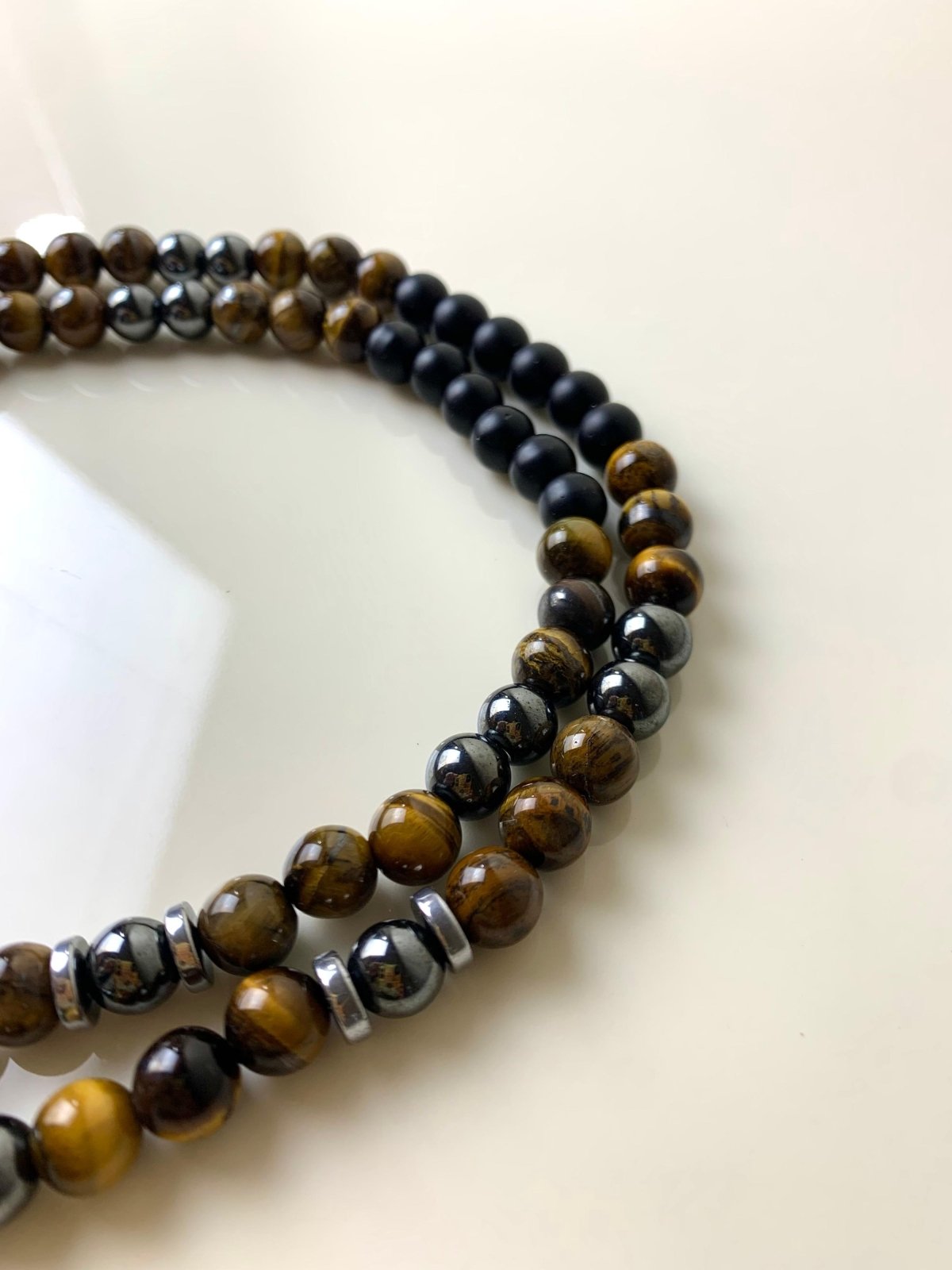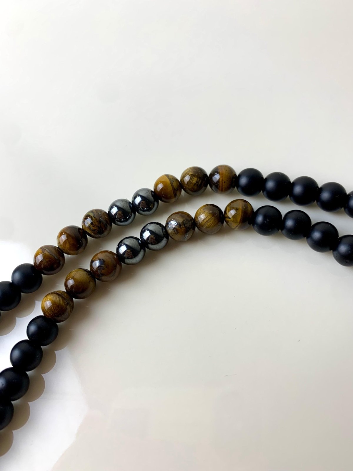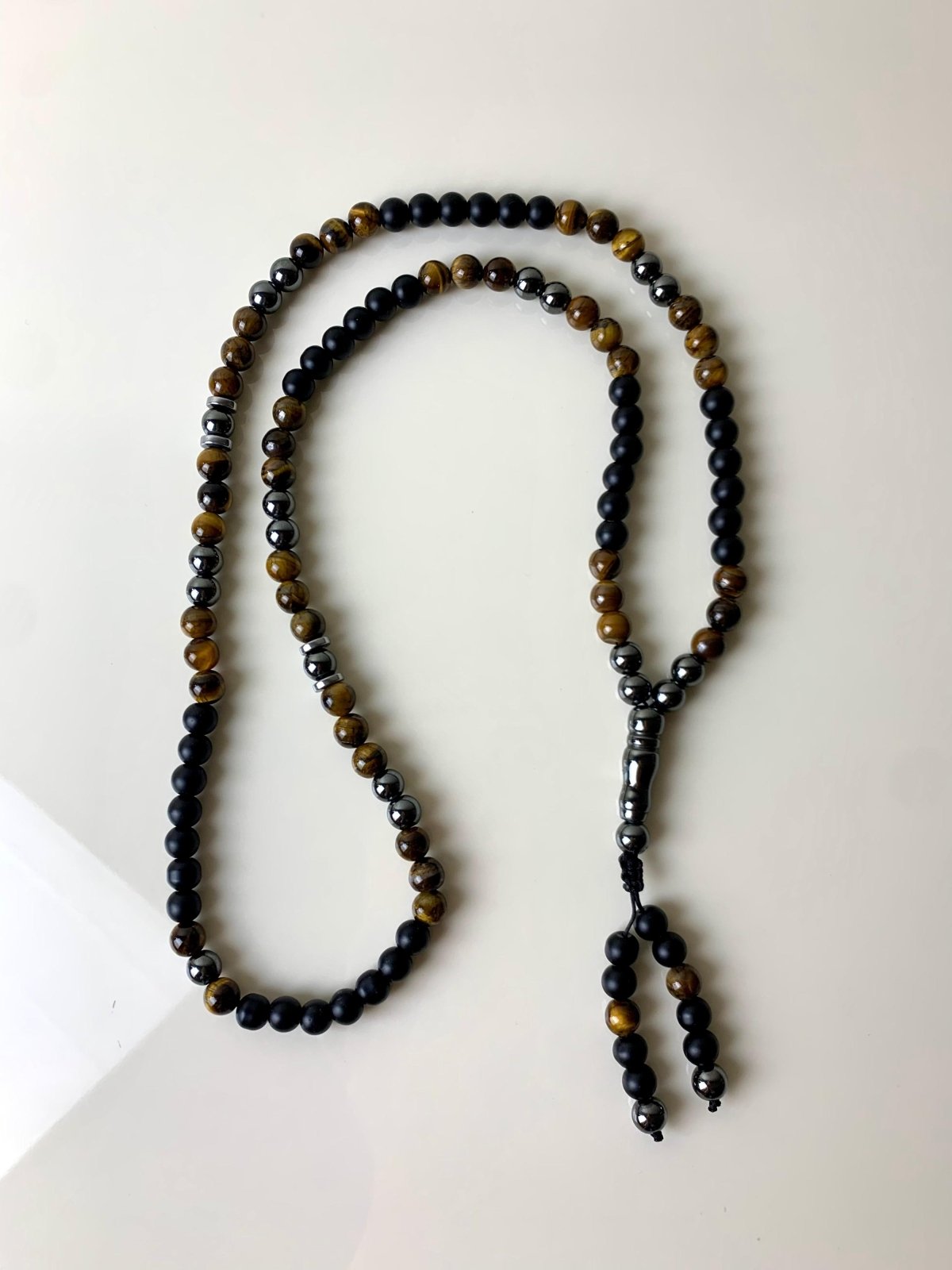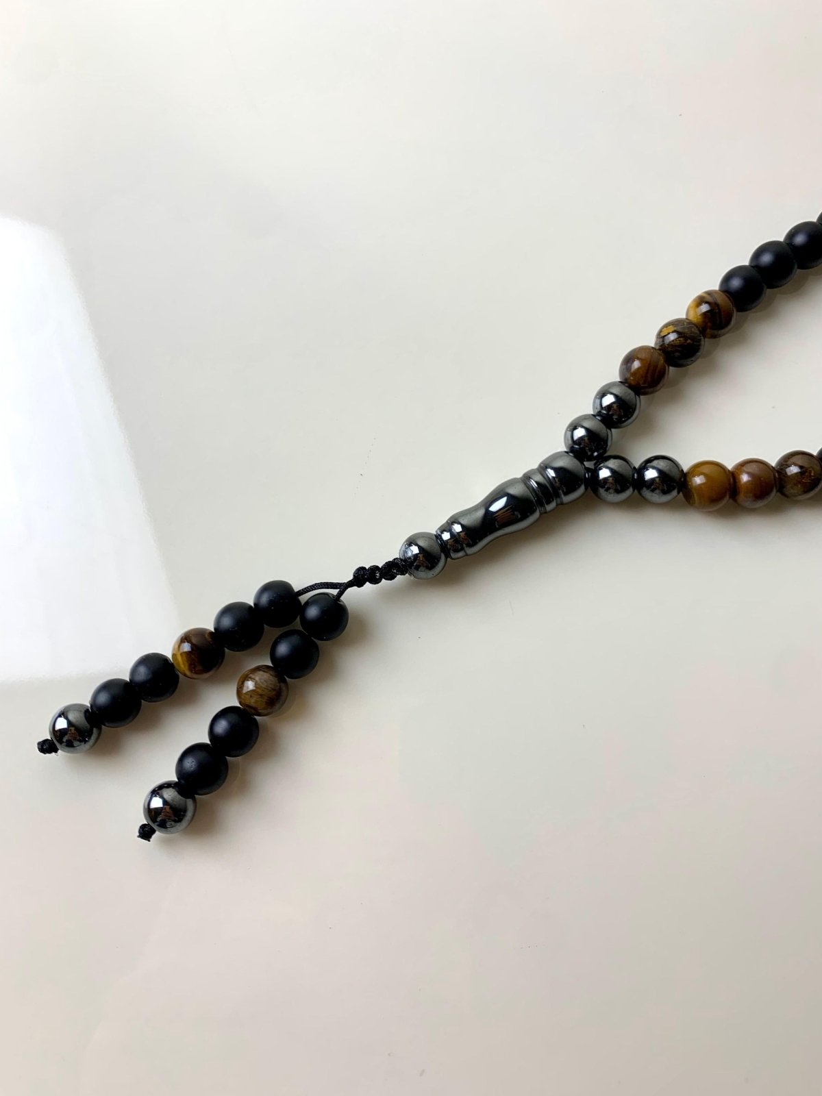 مسبحة من حجر التايجر اي والاونكس والهيماتايت - مقاس 8 مم - 99 مأذنه هيماتايت -فواصل هيماتايت - مغلفة بشكل جميل في حقيبة هدايا تحمل علامتنا التجارية، مما يجعلها هدية رائعة في أي مناسبة. -السعر : 750