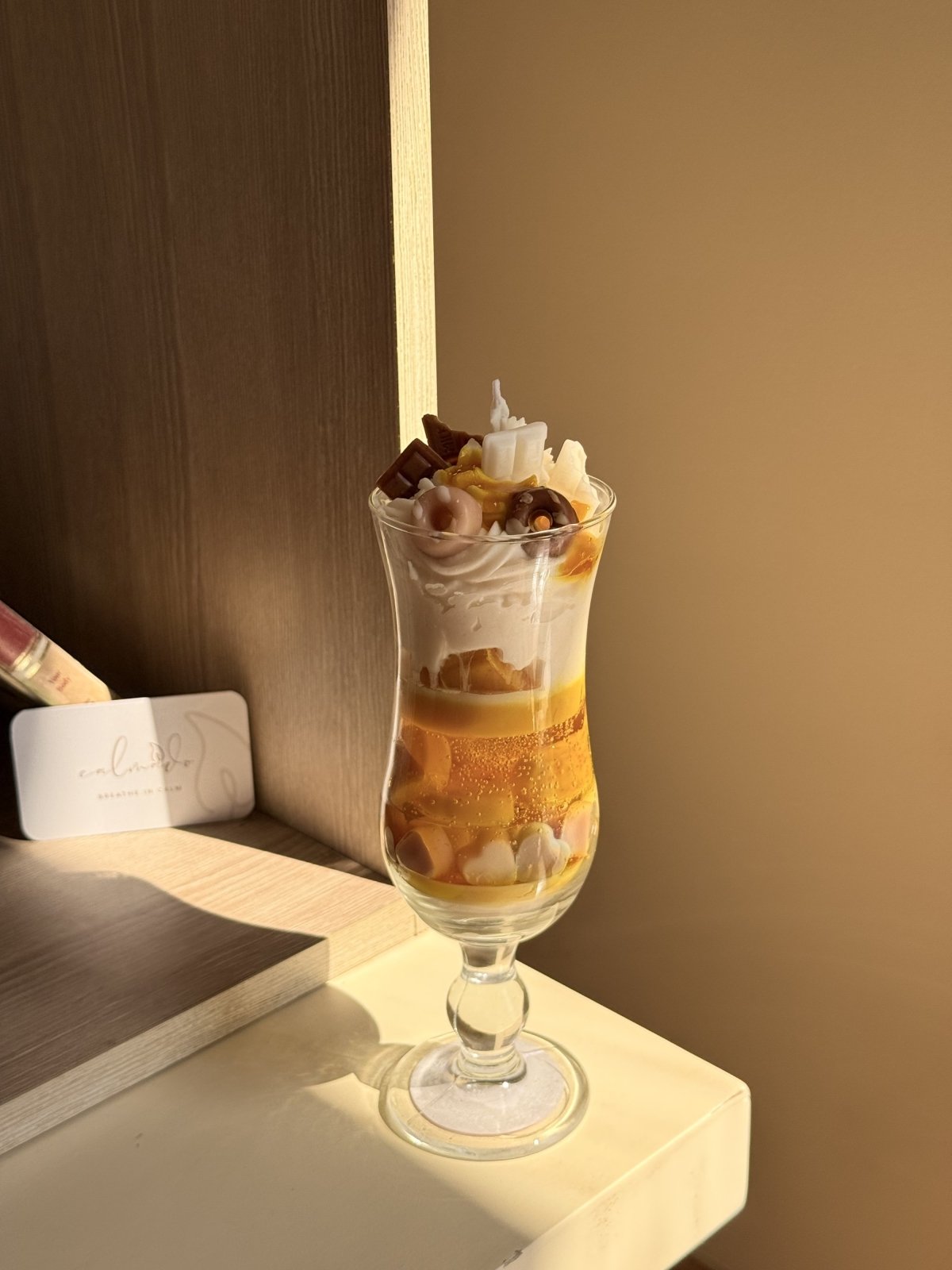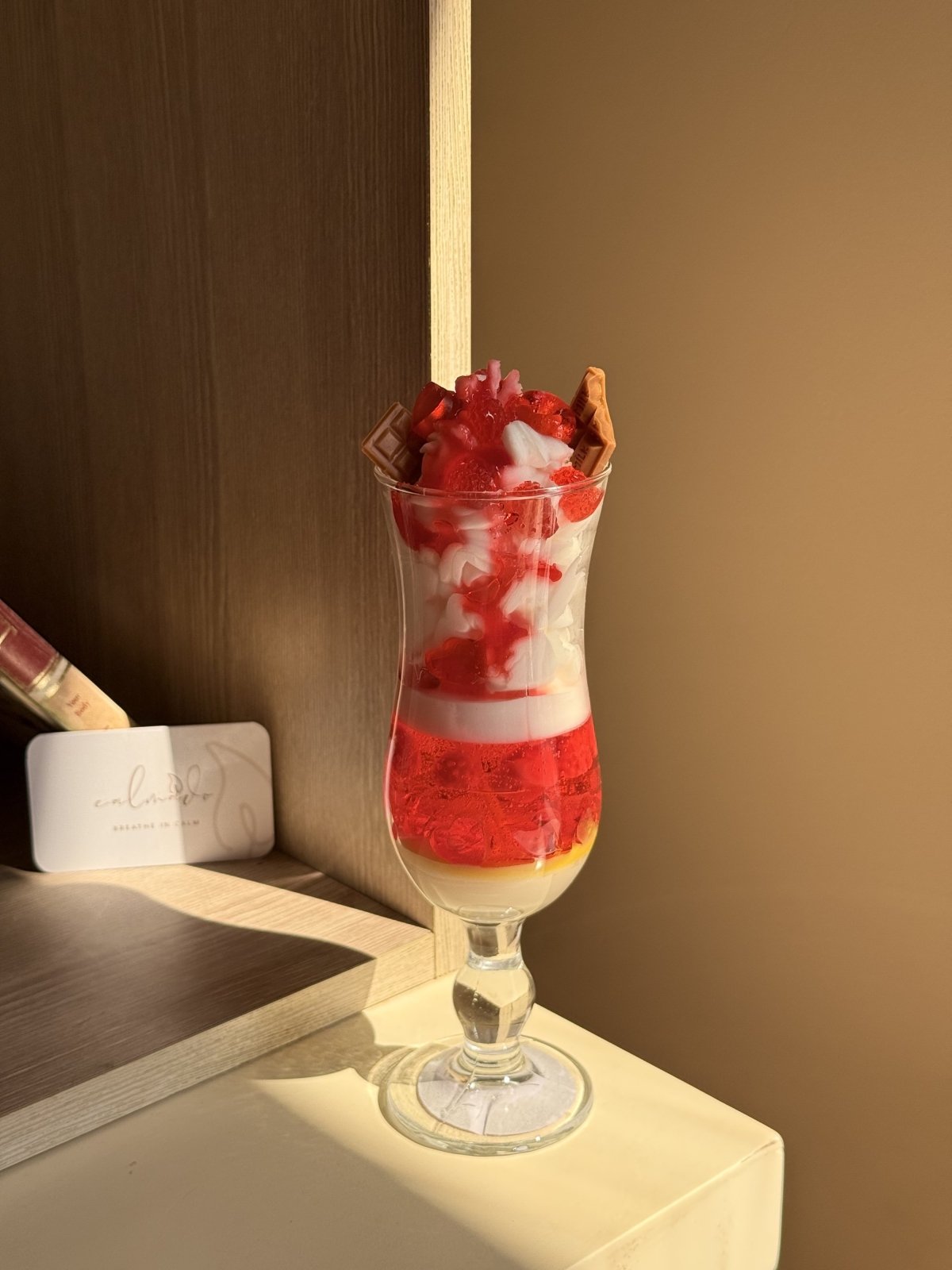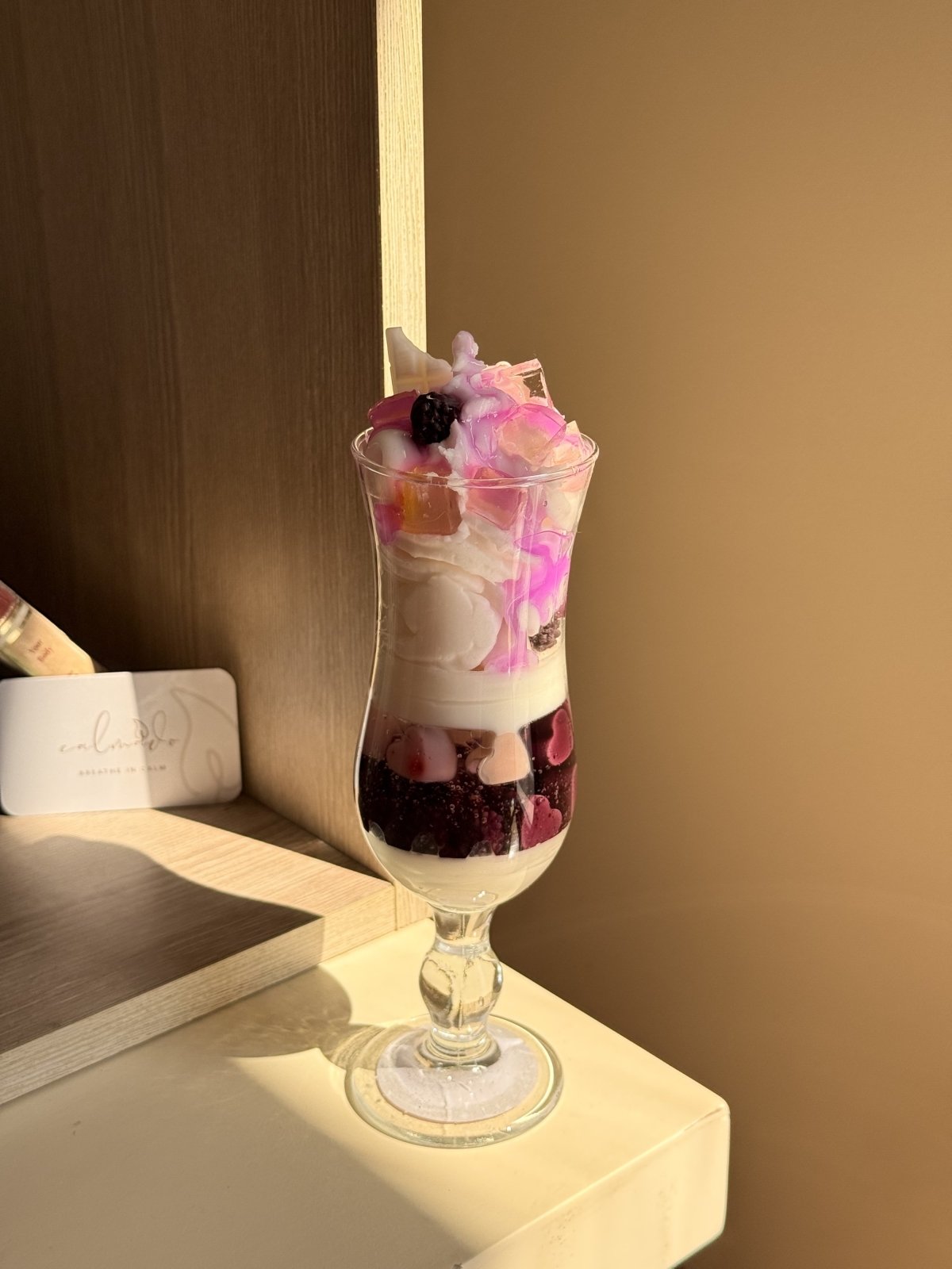 شمعة جلو جلاس – 270 غرام تحفة تجمع بين الجمال والواقعية. شمعتنا جلو جلاس بوزن 270 غرام مصنوعة يدويًا من مزيج فريد من شمع الصويا وشمع الجيل مع لمسة من الشمع الكريمي، مما يمنحها مظهرًا طبيعيًا وملمسًا فاخرًا يشبه الواقع