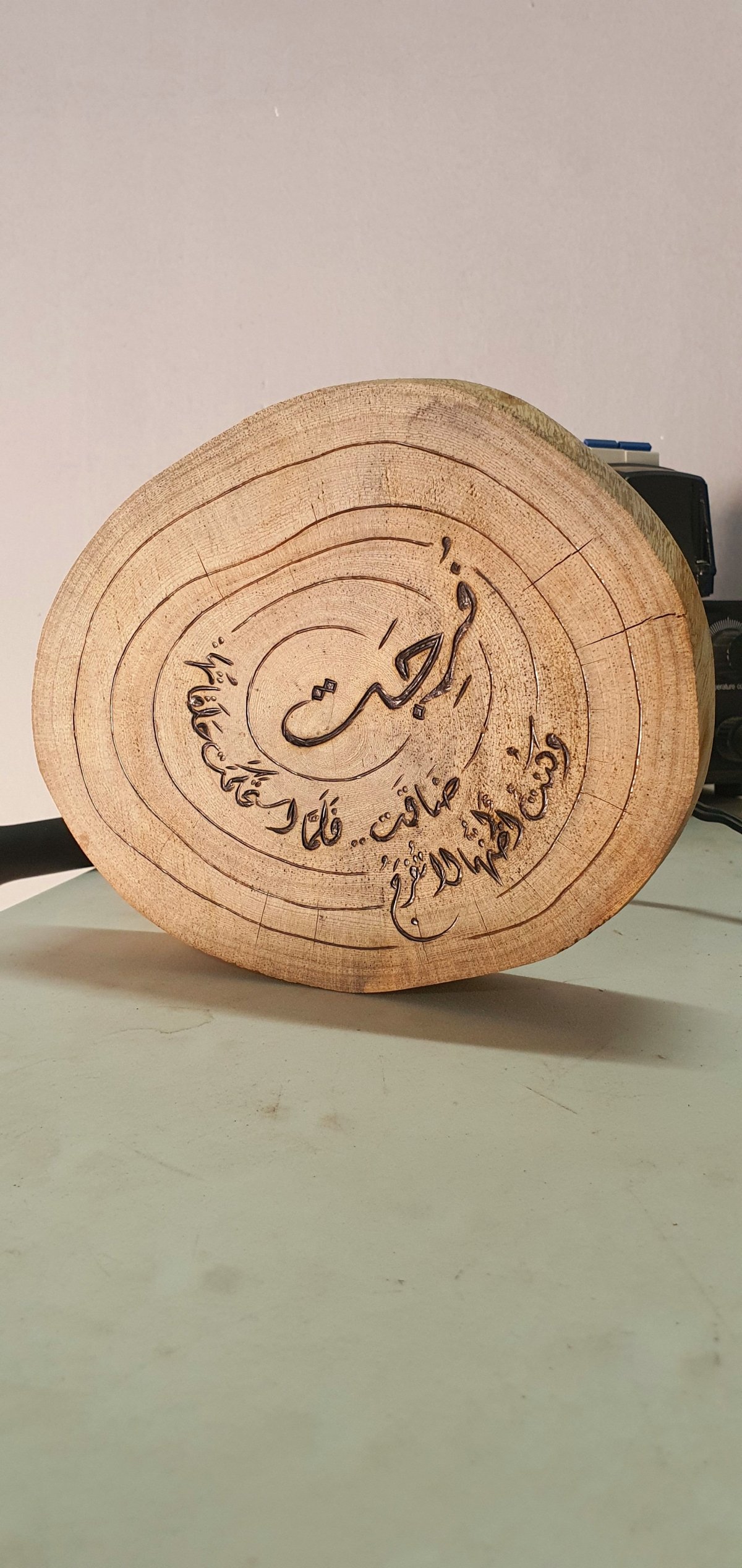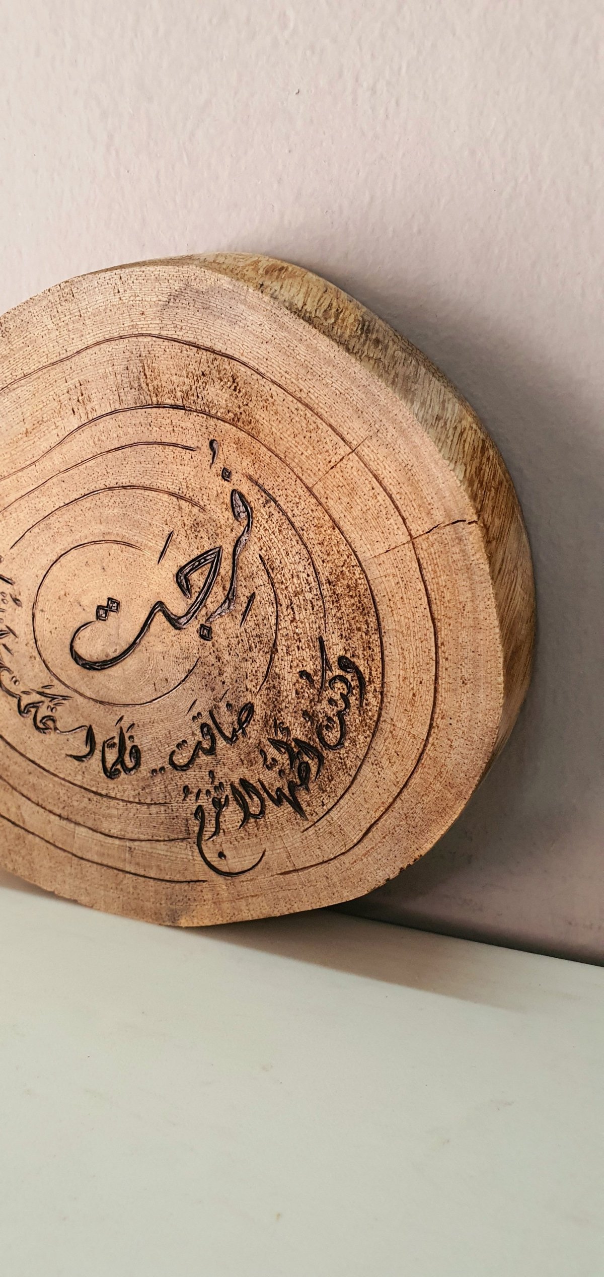 ضاقت.. فلما استحكمت حلقاتها فرجت، وكنت أظنها لا تفرج جذع خشب طبيعي، مزين بتصميم فريد نفَّذناه بفن الحرق اليدوي على الخشب، يمكن تعليقه على الحائط أو وضعه في وضع رأسي على الطاولة لإضافة لمسة فنية دافئة إلى غرفتك أو منزلك. الأبعاد: عرض حوالي ١٧ سم، الارتفاع حوالي ١٣ سم، سمك ٤-٥ سم