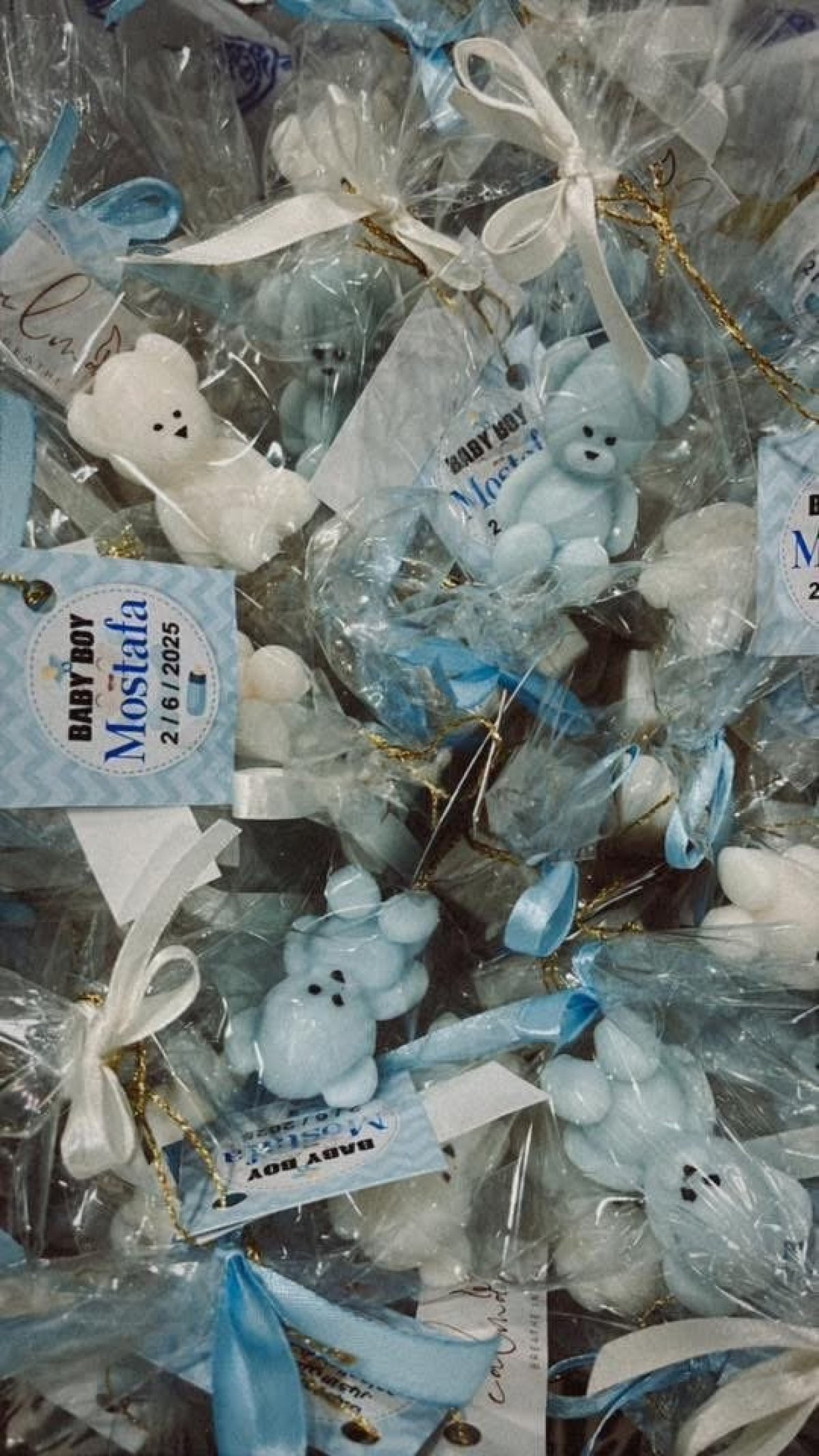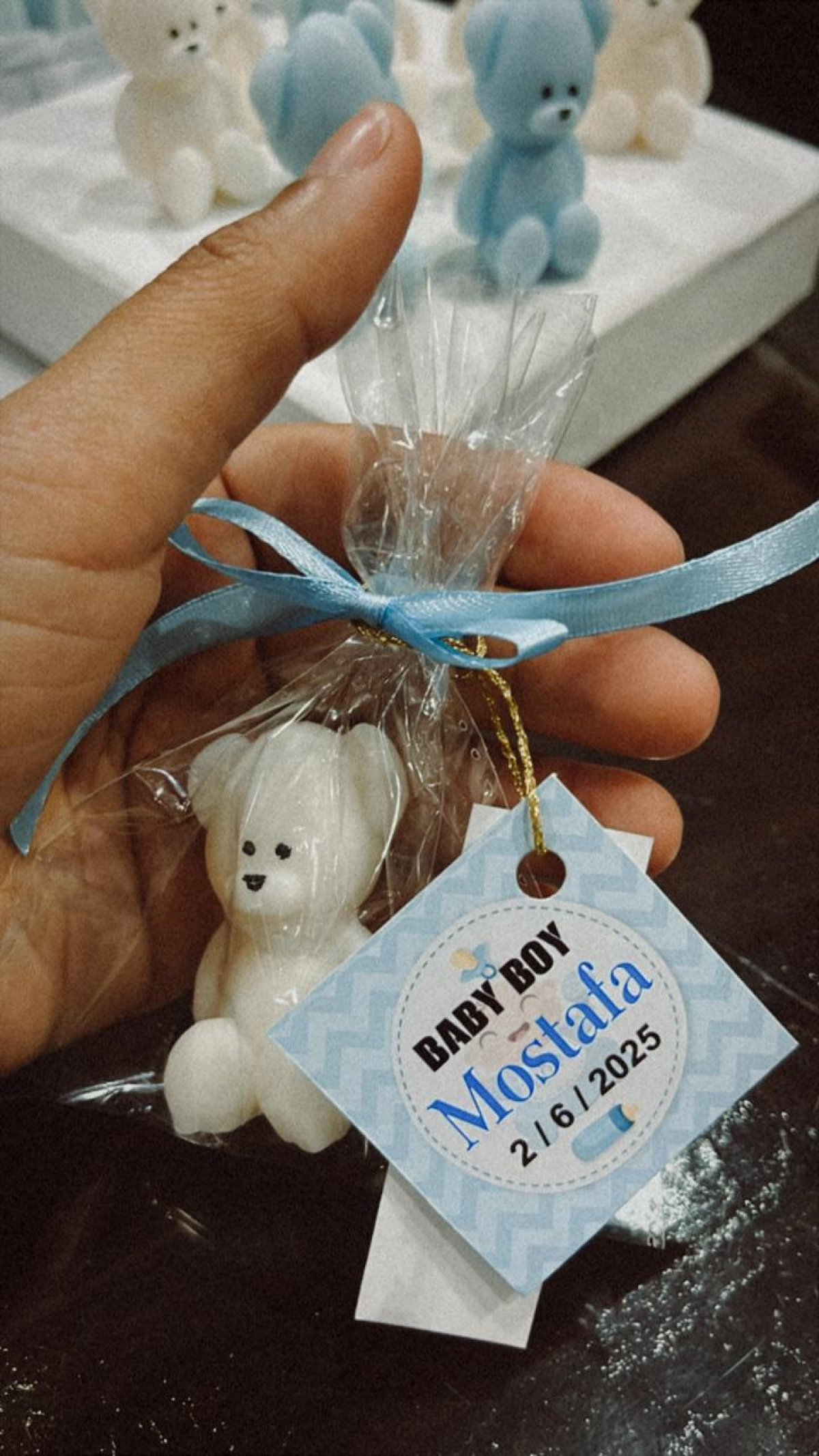 أضيفي لمسة من الدفء واللطافة إلى حفلتك مع شمعتنا الصغيرة على شكل دبدوب! مصنوعة يدويًا بدقة، بتصميم دبدوب ناعم وألوان باستيل هادئة تضفي جمالًا خاصًا على طاولة الضيافة أو توزيعات الضيوف. هذه الشمعة الصغيرة ليست فقط جميلة، بل آمنة أيضًا بفضل شمعها غير السام، مما يجعلها مثالية لأجواء استقبال المولود سواء كان صبيًا أو فتاة