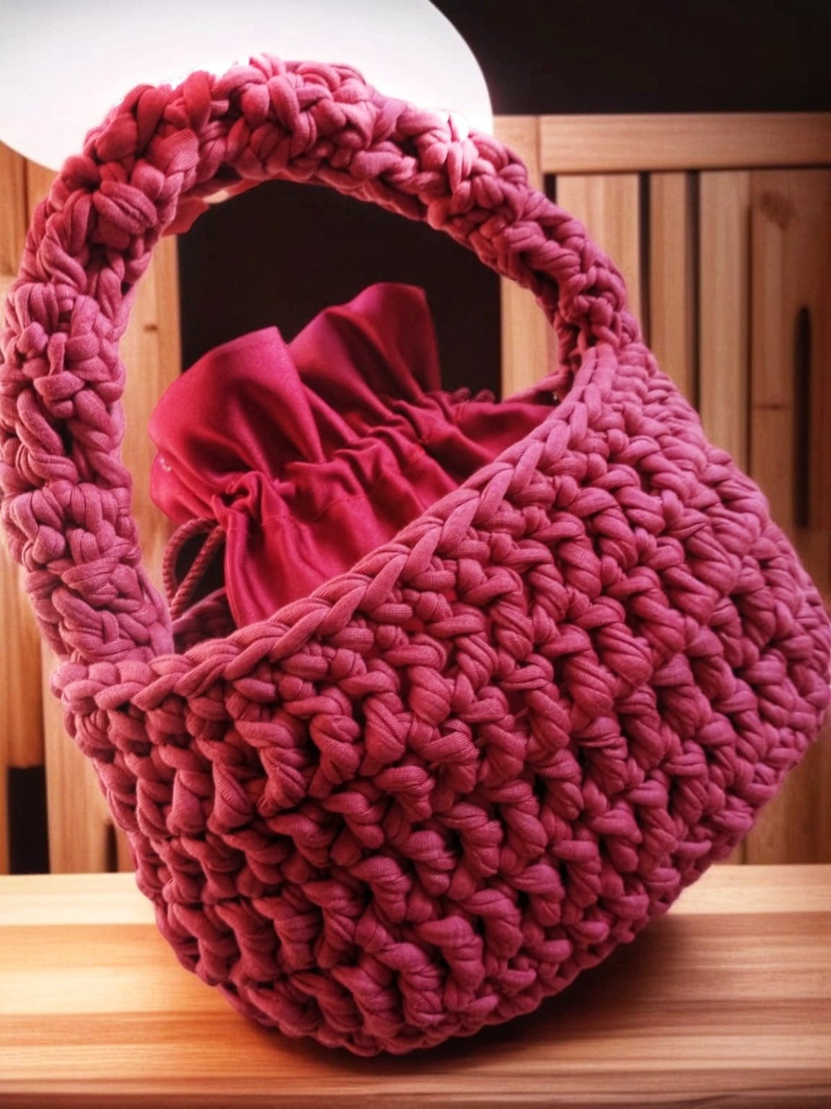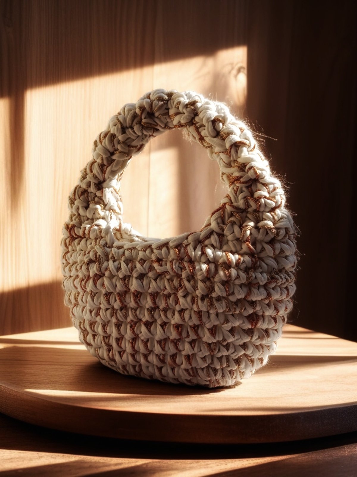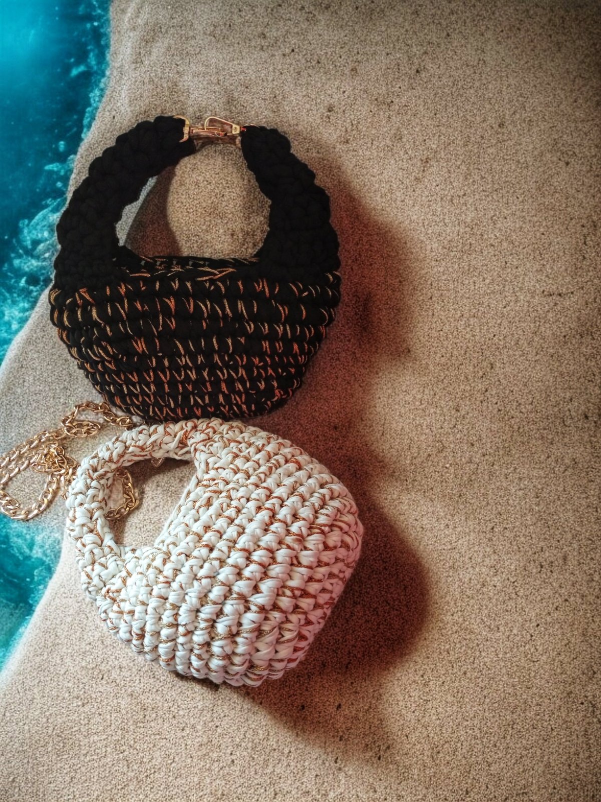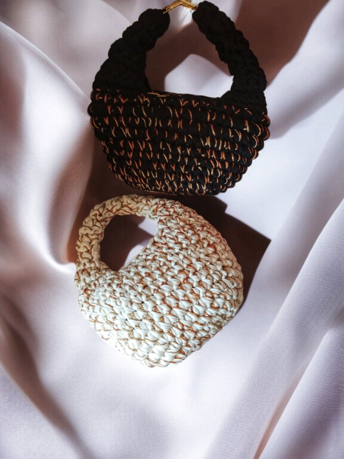 شنط كروشيه صنعت يدويا من خيوط الكليم خفيفه الوزن لها هاند صغير ودراع كروس مقاس ٢٣/١٢