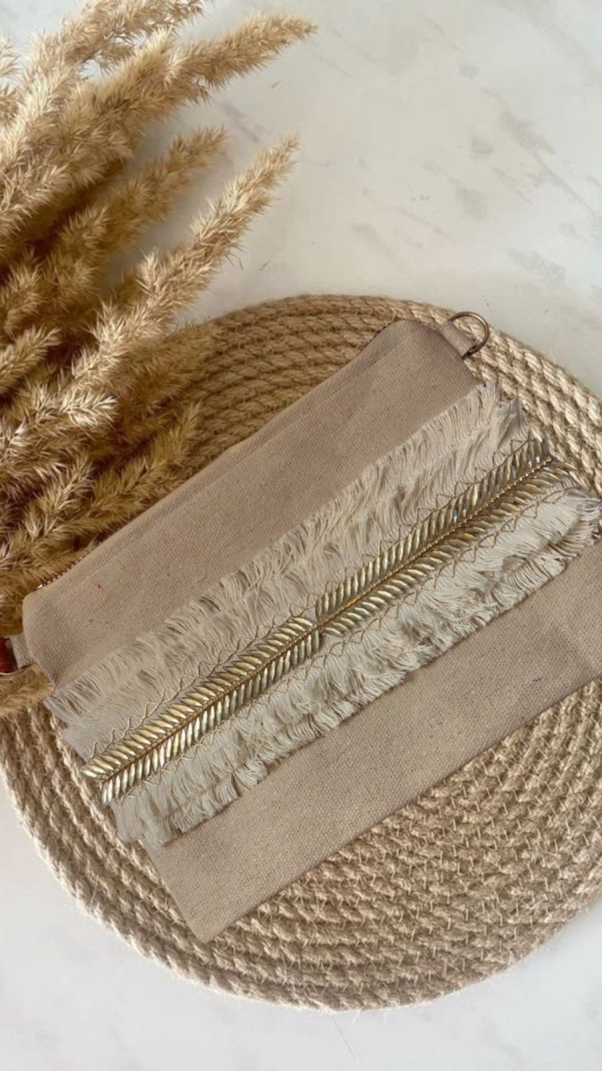 كلاتش مصنوع من الكتان بسوستة و مبطن و به ذراع قصيرة من الجانب