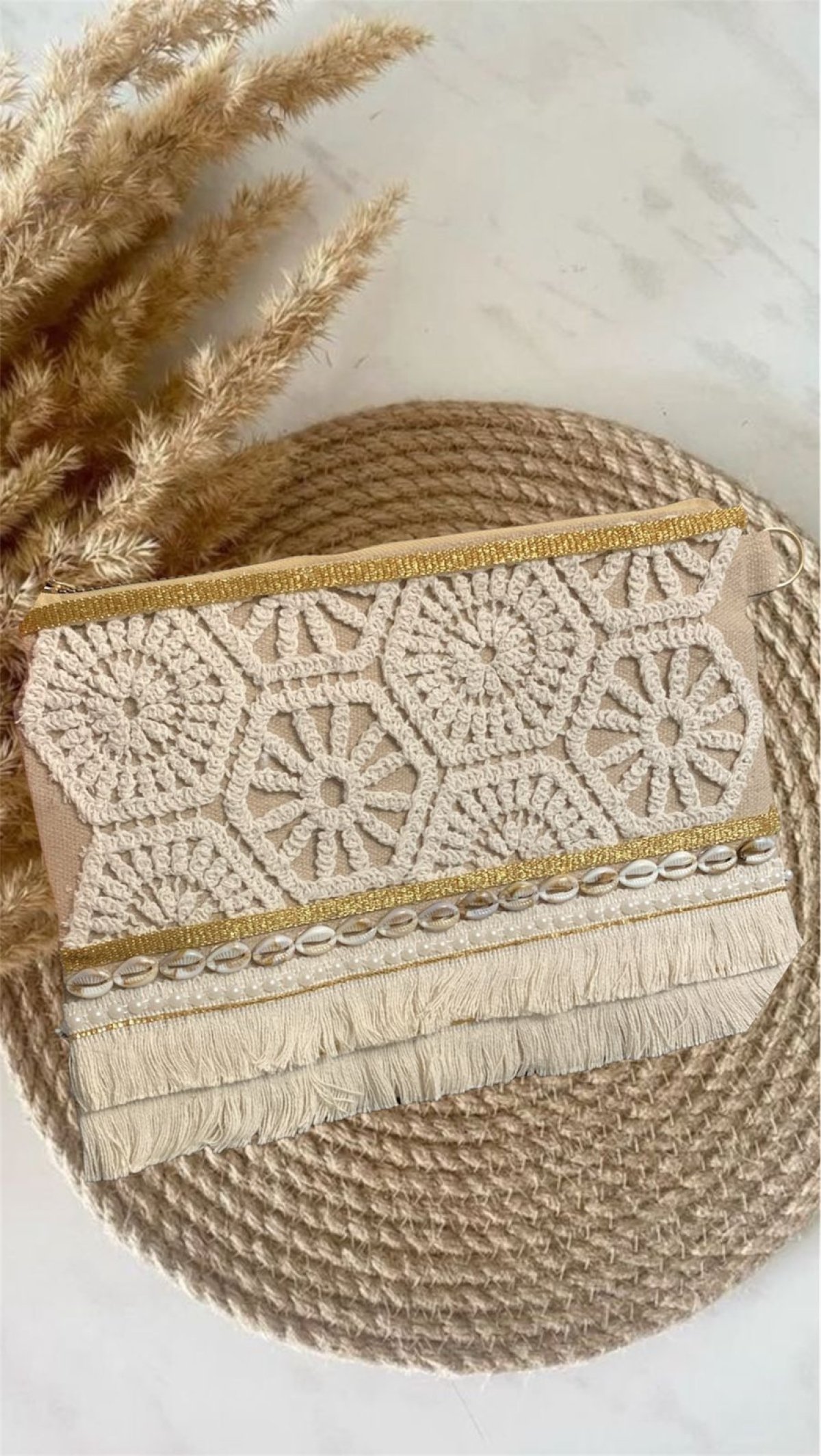 كلاتش مصنوع من الكتان ومبطن وله يد من الجانب