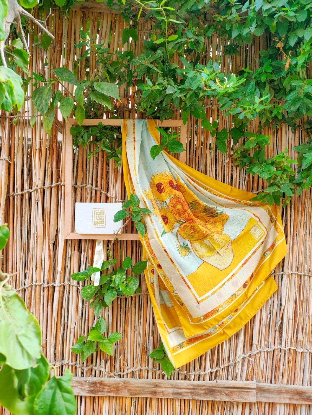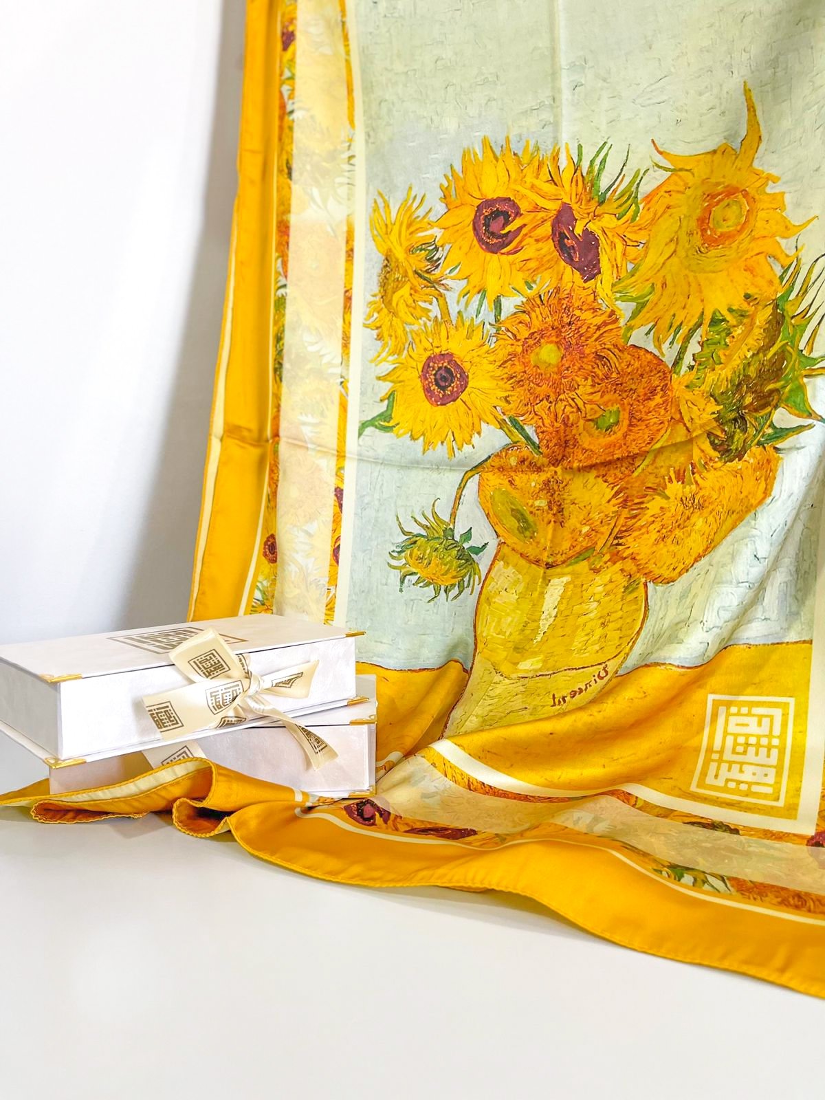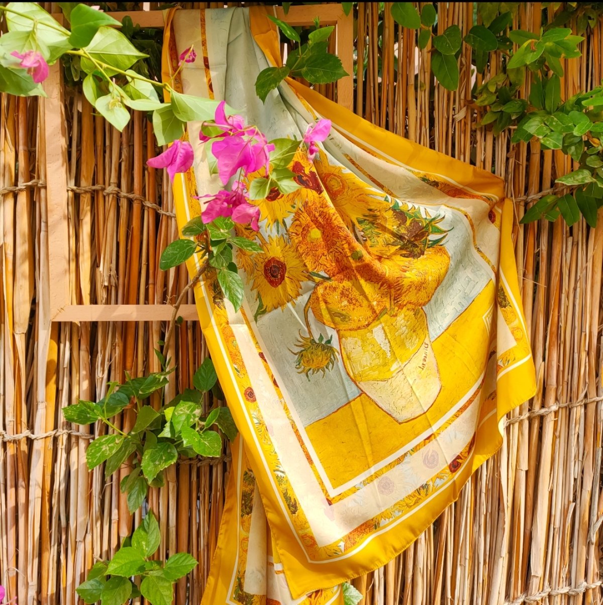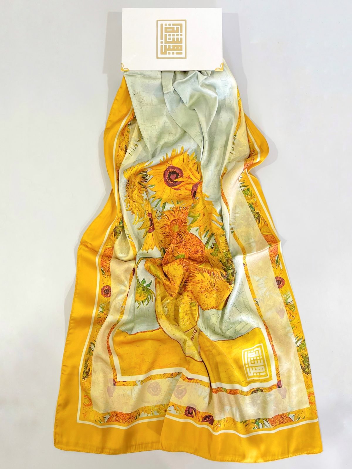 استمدي إلهامك من عظمة الفن مع 'Sunflower'، المستوحاة من لوحة الفنان العبقري فان جوخ الشهيرة 'Sunflowers'. هذه الطرحة هي تجسيد للألوان الزاهية والجمال الطبيعي، حيث تتناغم درجات الأصفر الدافئة والبنية العميقة لتخلق قطعة فنية ترتديها. تضفي زهور دوار الشمس النابضة بالحياة لمسة من التفاؤل والإشراق، مما يجعل هذه الطرحة الخيار الأمثل لإضافة لمسة فنية إلى إطلالتك اليومية. ارتدي 'Sunflower' واستمتعي بجمال الطبيعة وروح الإبداع في قطعة واحدة.