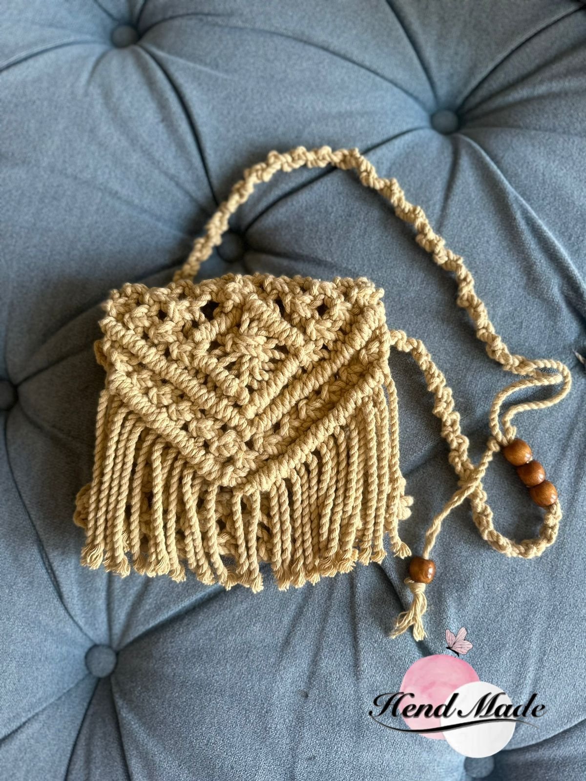 Macramé cross bag made with cotton yarn Color: bieg Size :18*20cm You can choose your favorite color and size by order