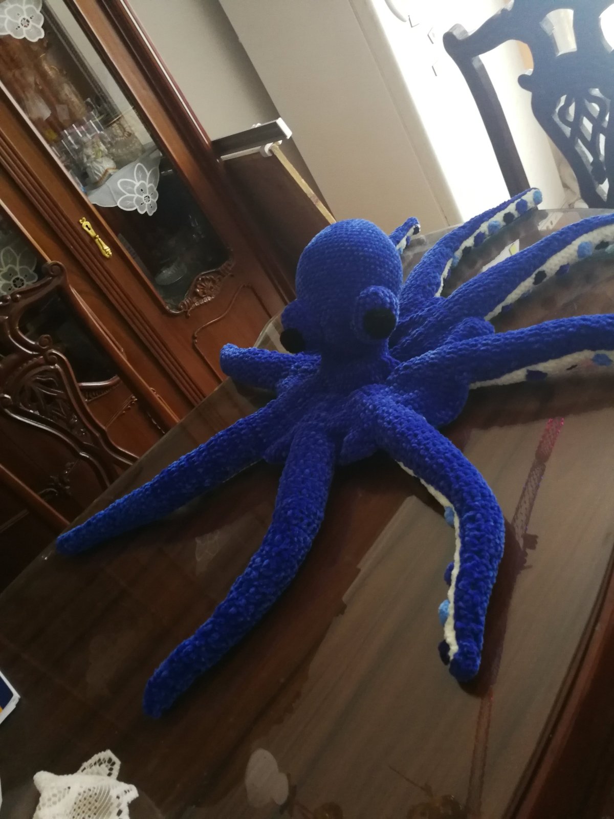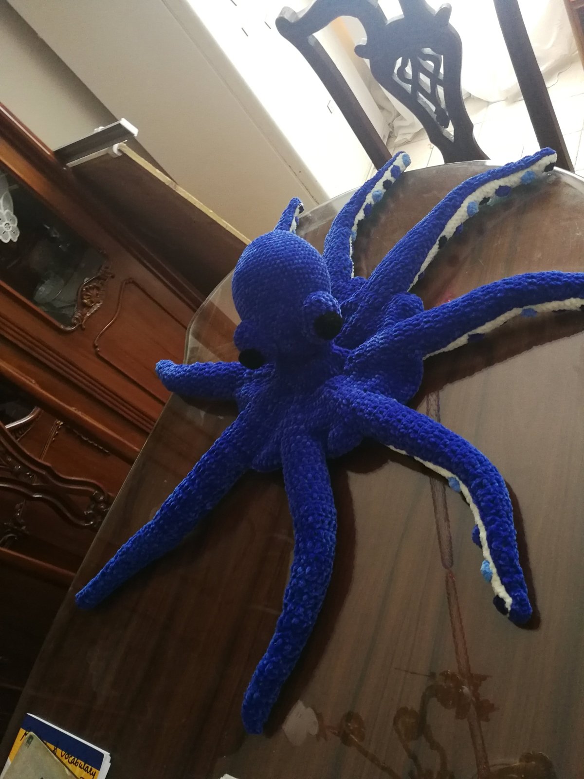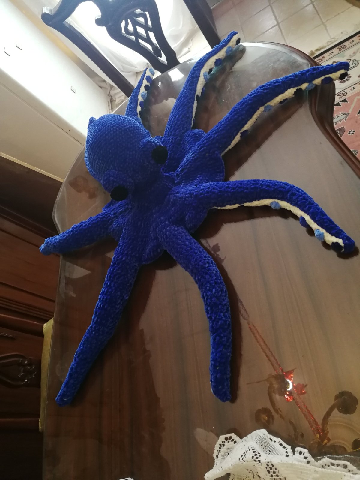 أخطبوط محشو كبير مصنوع من خيوط مخملية ناعمة. قطره ممتد على مساحة 100 سم.