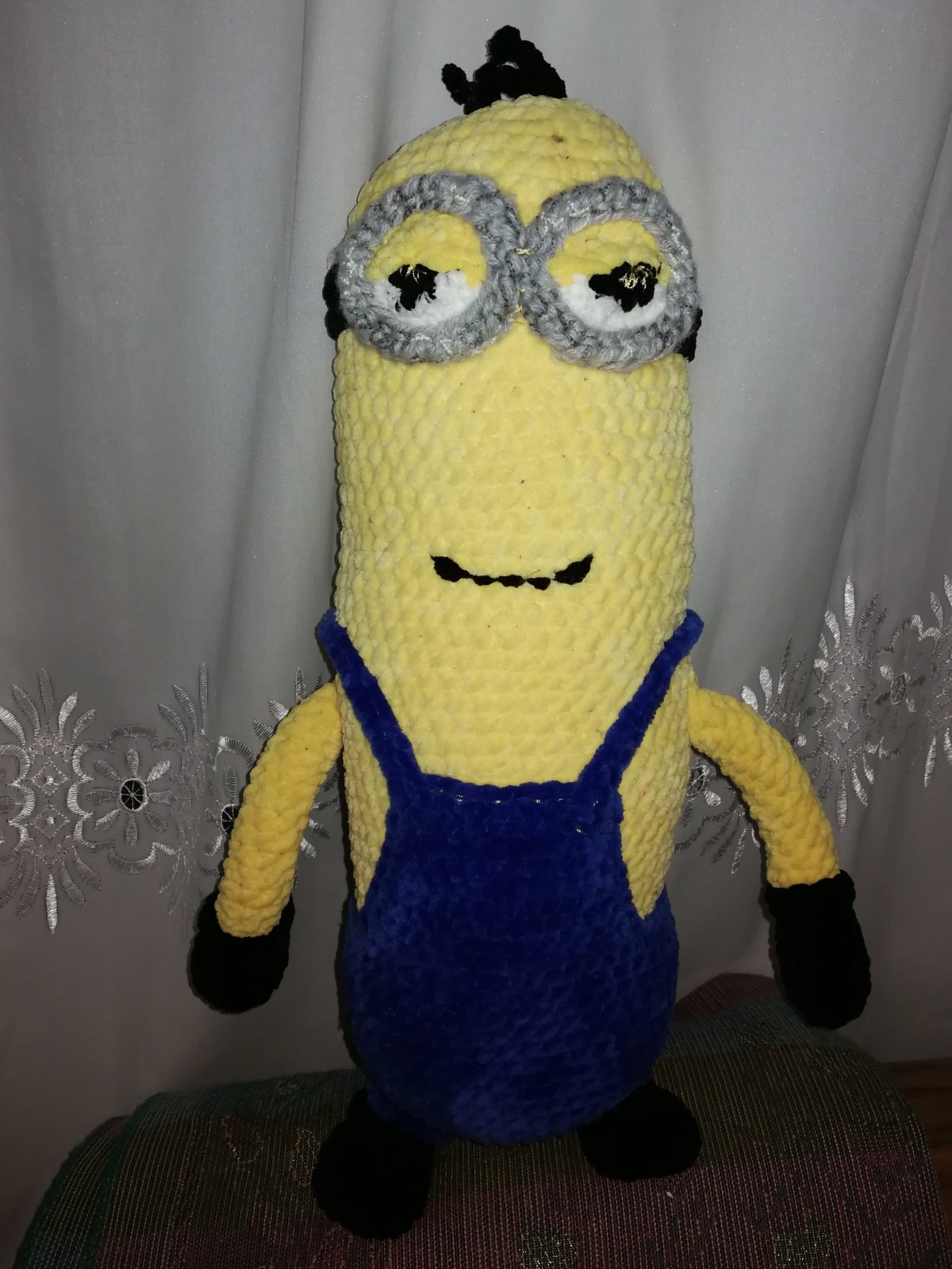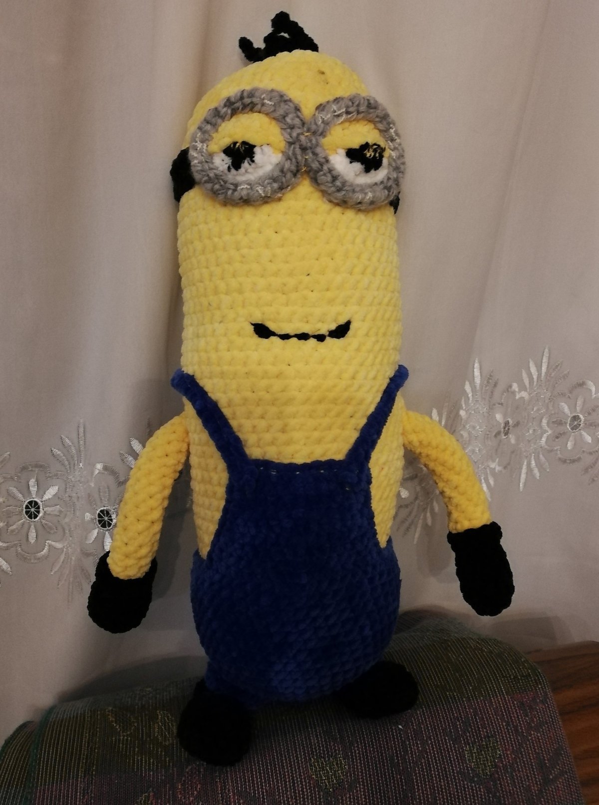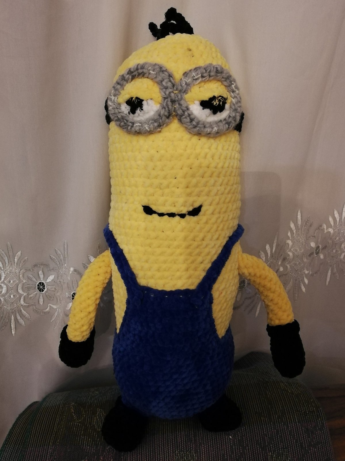 دمية كروشيه محشوة على شكل كيفن المينيون، مستوحاة من فيلم الرسوم المتحركة Despicable Me، مصنوعة من خيوط مخملية ناعمة، يبلغ قياسها 30 سم.