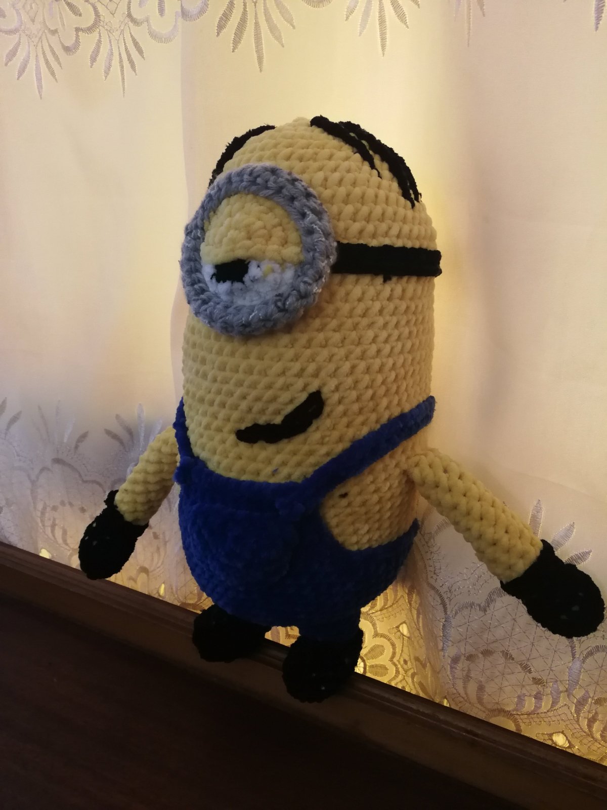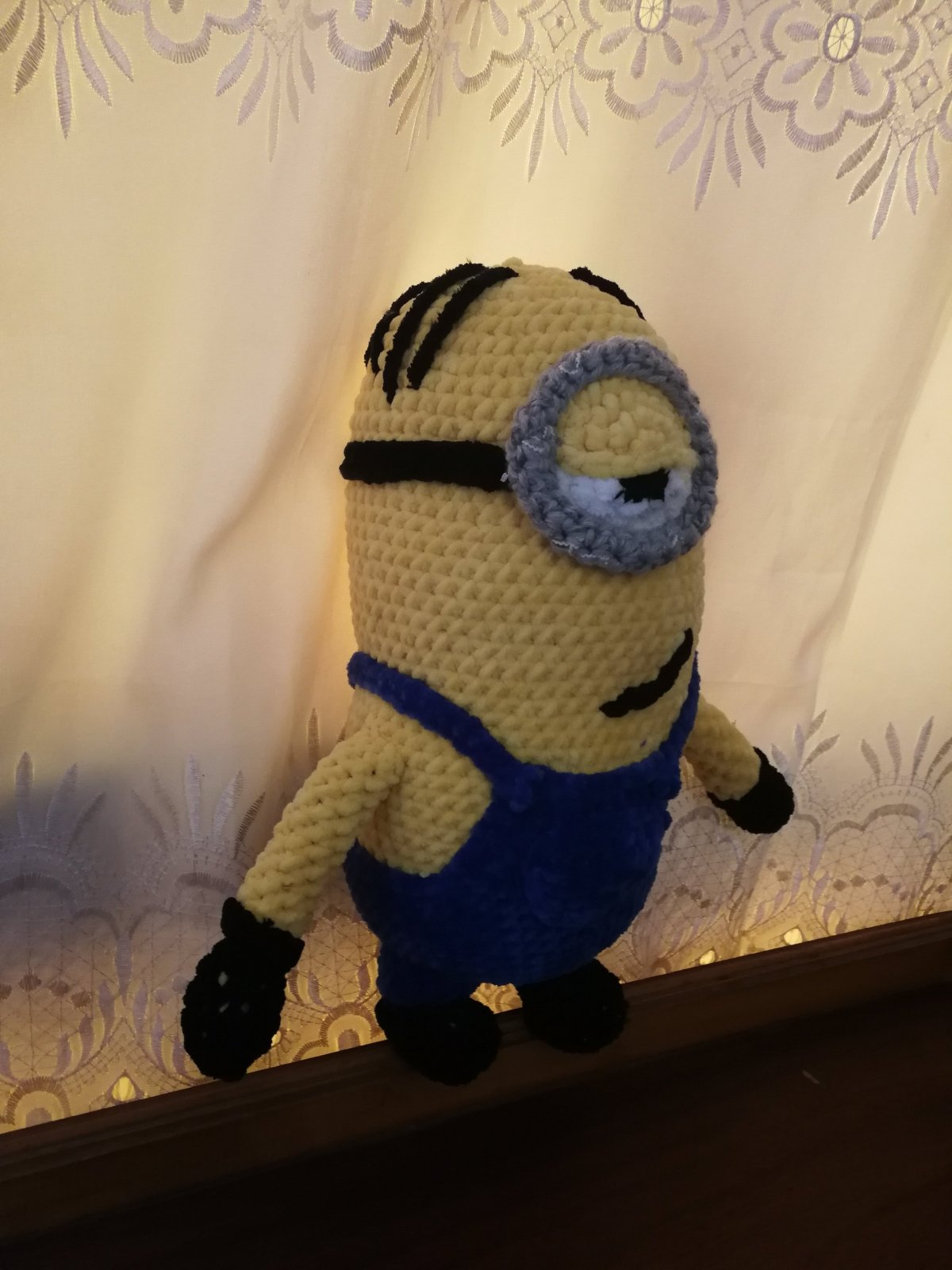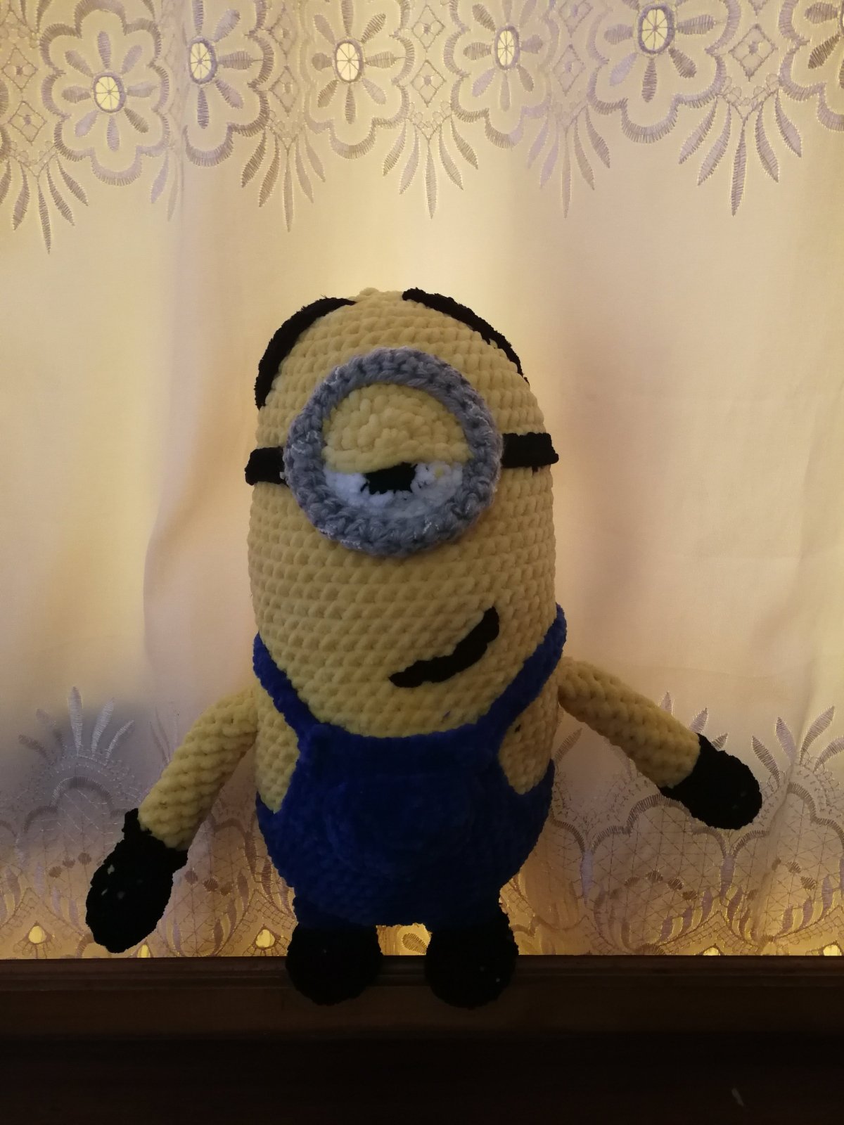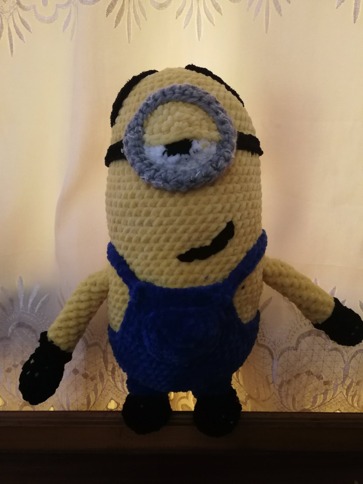 دمية ستيوارت المينيون المحشوة بالكروشيه، المستوحاة من فيلم الرسوم المتحركة Despicable Me، مصنوعة من خيوط مخملية ناعمة ويبلغ قياسها 30 سم.