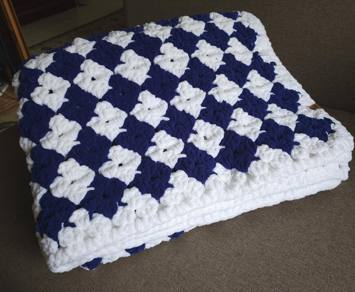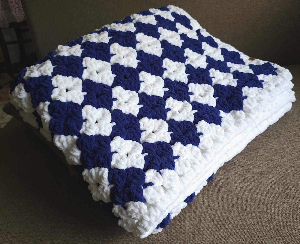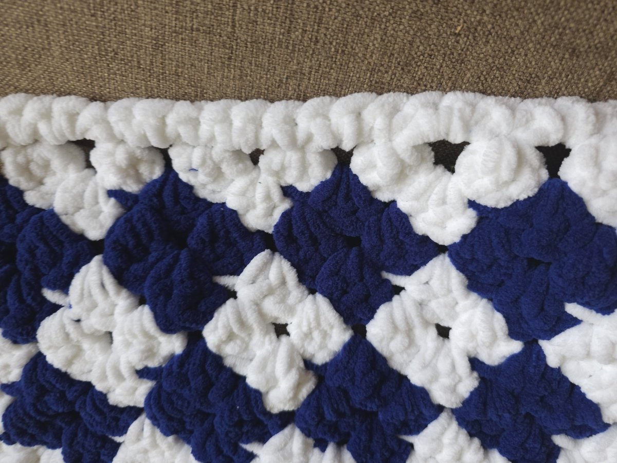 هذه البطانية الكروشيه، مصنوعة من خيوط مخملية ناعمة، يبلغ مقاسها 100 × 170 سم.
