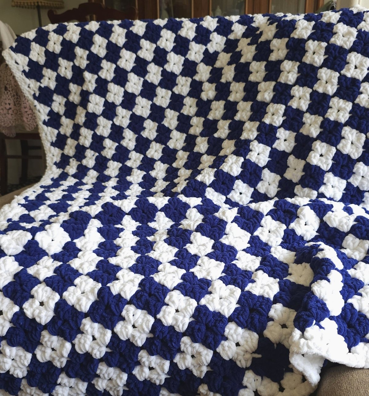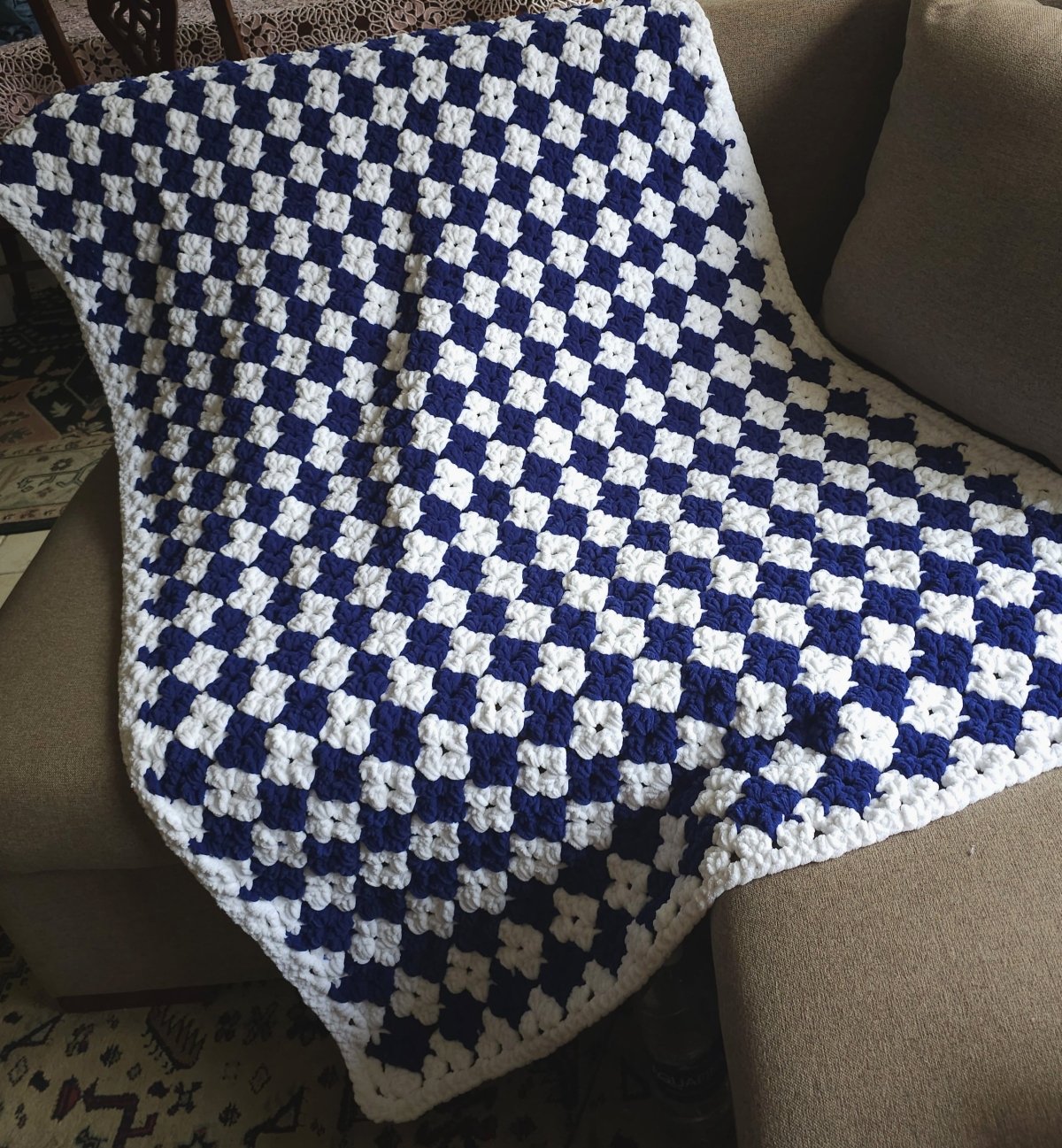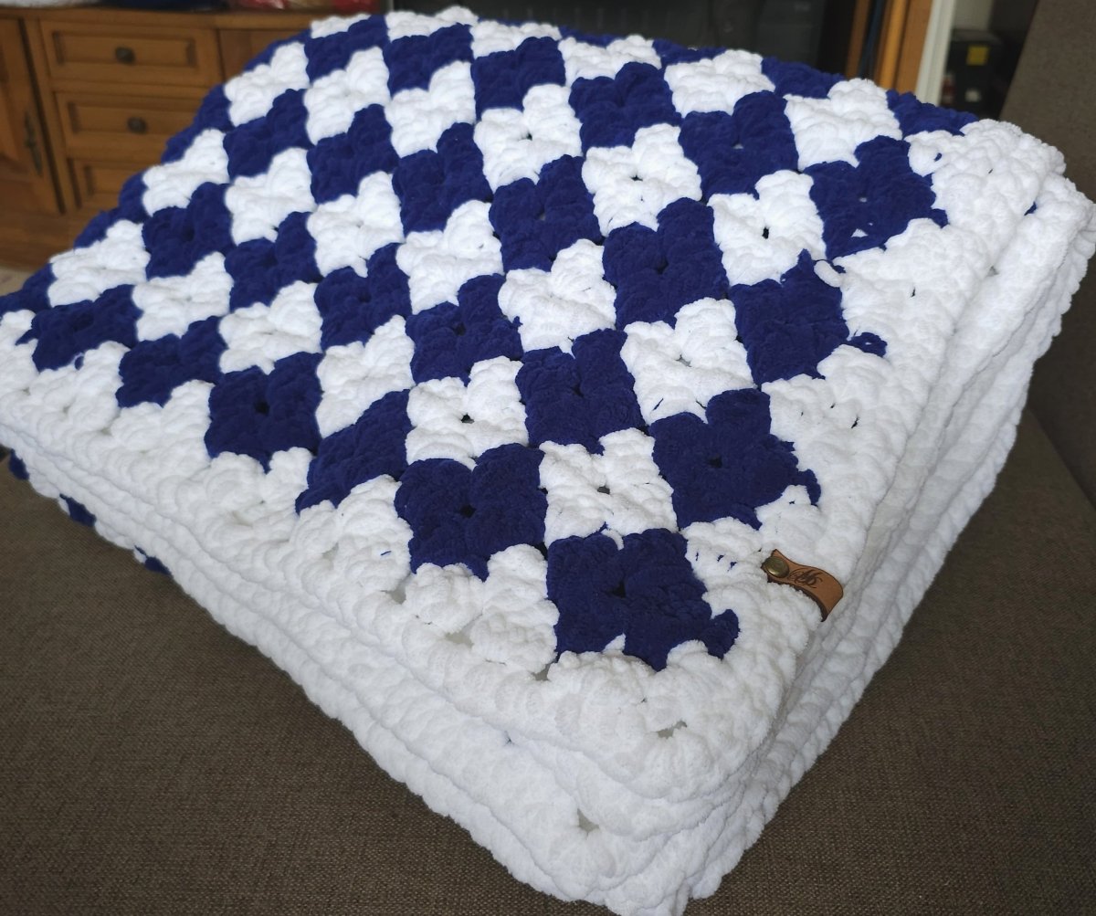 هذه البطانية الكروشيه، مصنوعة من خيوط مخملية ناعمة، يبلغ مقاسها 100 × 170 سم.