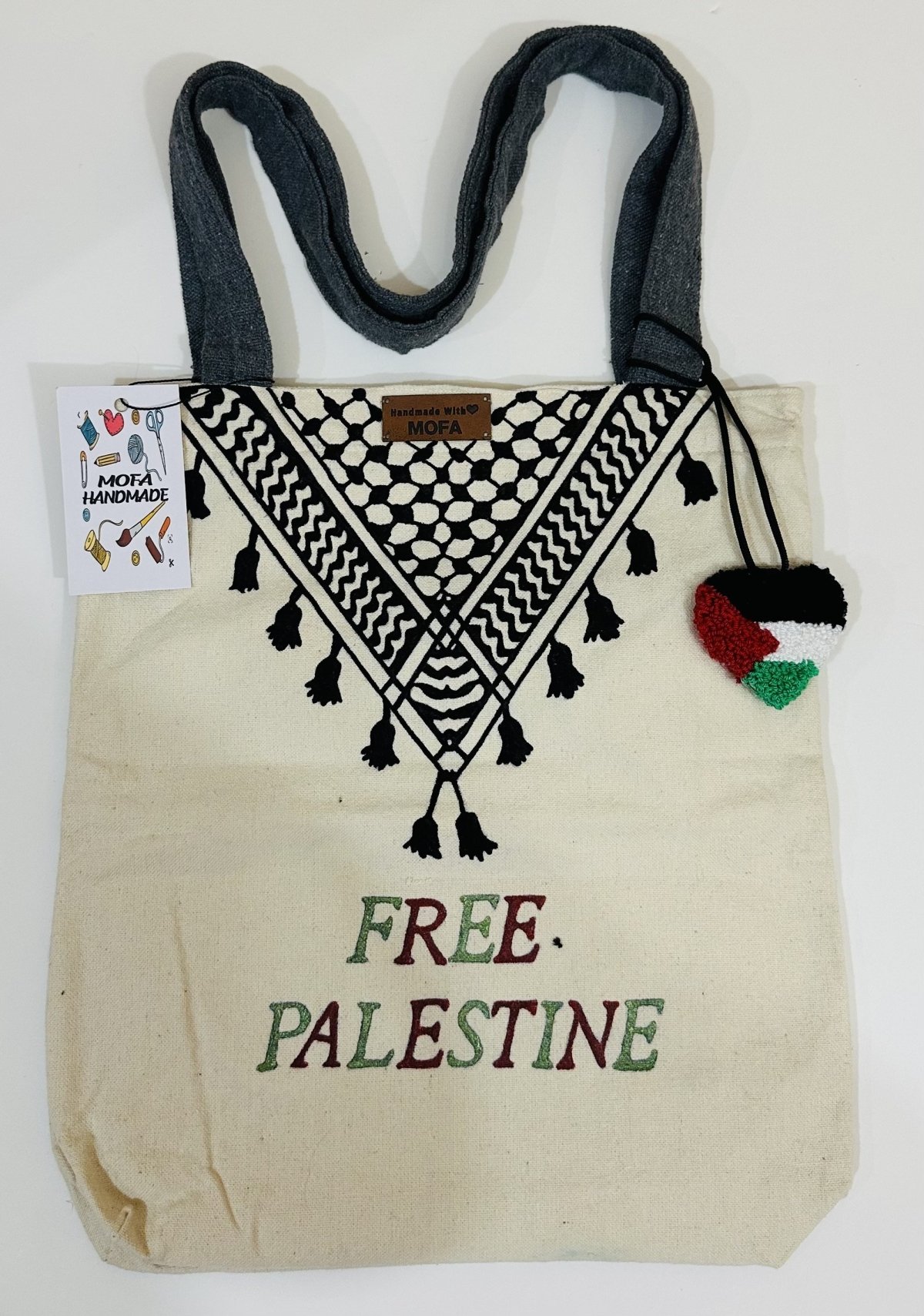 شنطه من القماش مقاس 35*40 بحزام من نفس نوع القماش مبطنه بقماش من الداخل و بها جيوب داخليه.