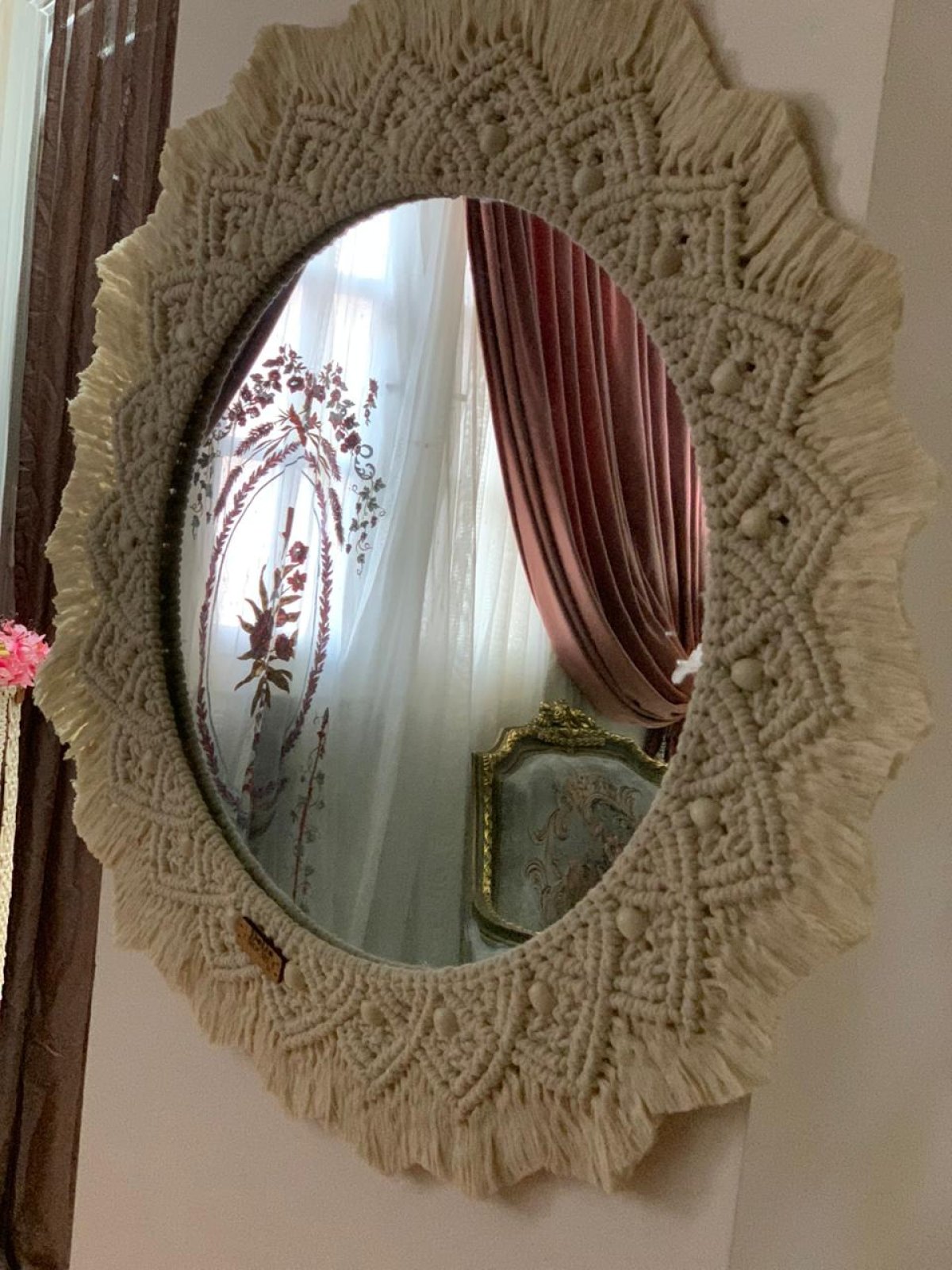 مرايه ديكور مكرميه قطر 95سم قطعه ديكور مميزه بتضيف لمسه جماليه في بيتك وبتدى اضاءه ومساحه للمكان ومناسبه لأى مكان في البيت