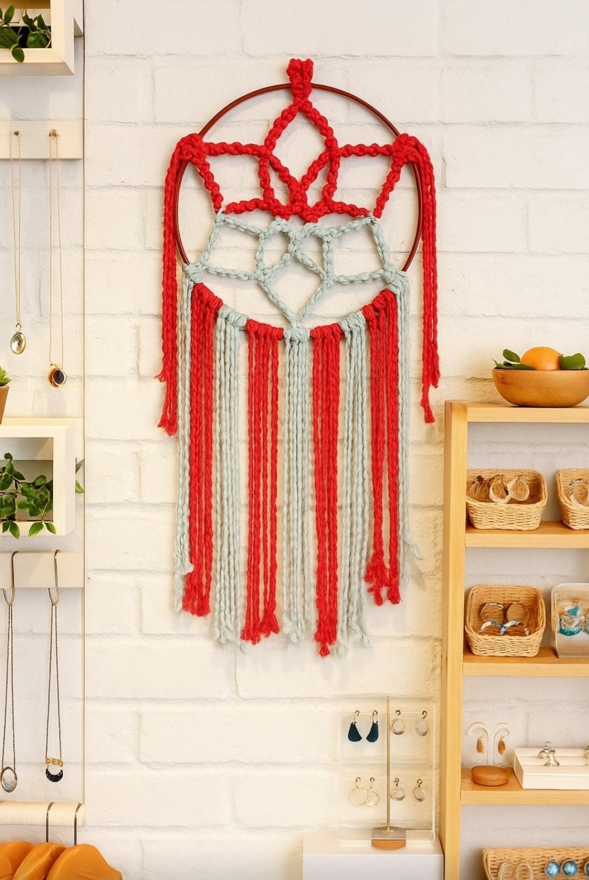طارة مصنوعة من الخشب قطرها ٣٥ سنتي من خيوط المكرمية