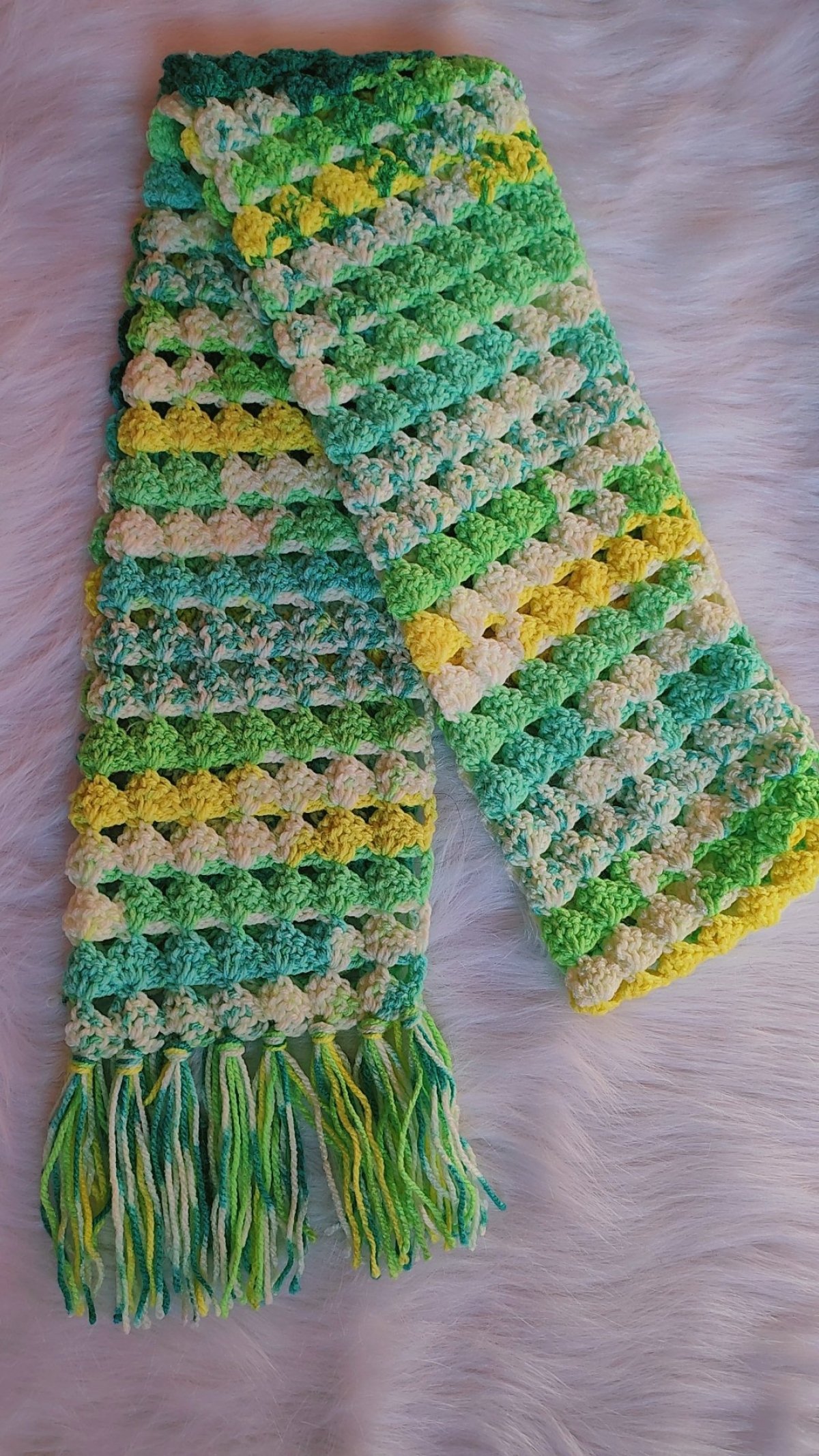كوفية من خيوط الصوف طولها 180 سنتي بدون الشراشيب و 2 متر بالشراشيب و عرضها 16 سنتي متاح التنفيذ باي لون
