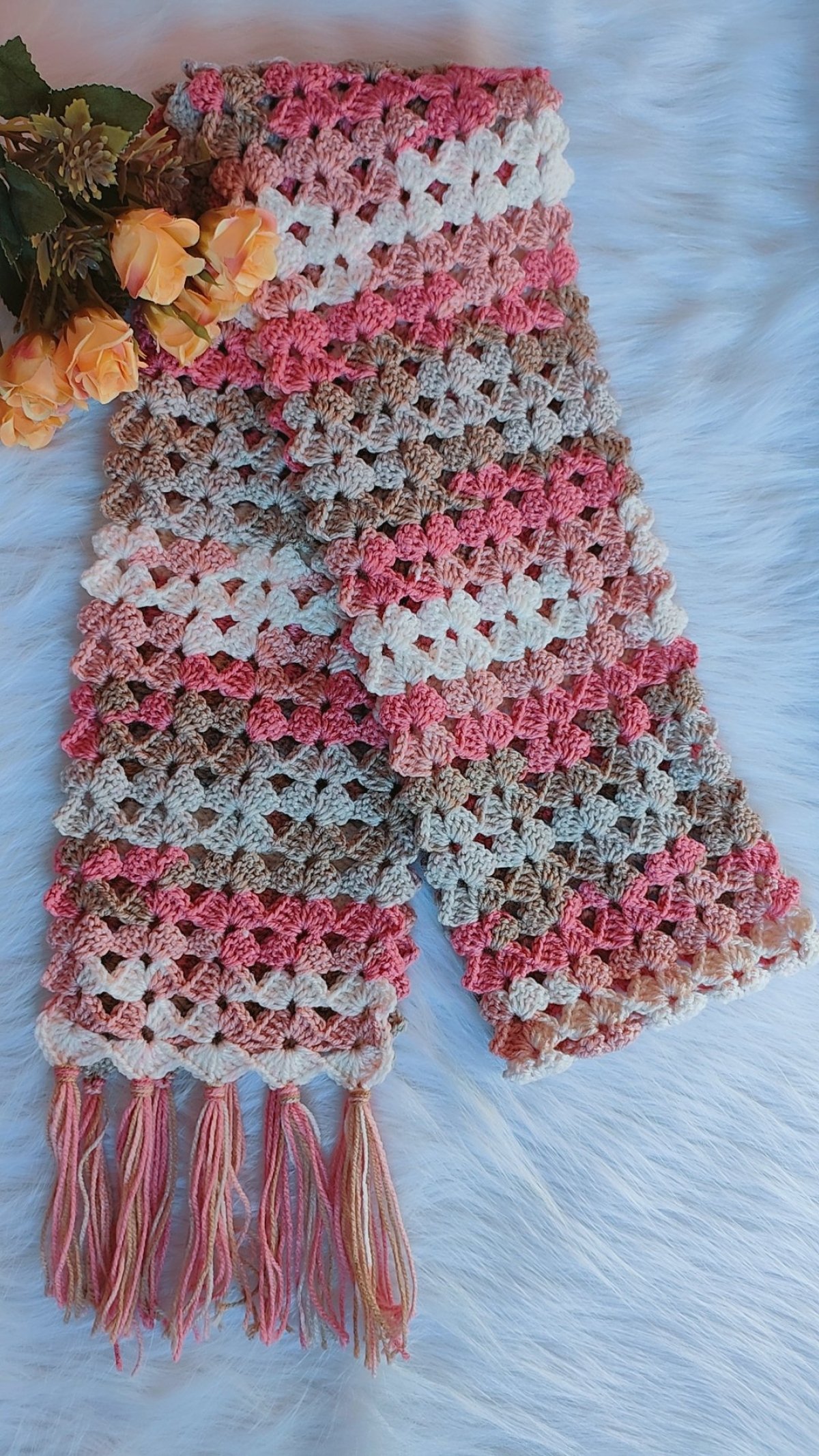 كوفية من خيوط الصوف طولها 180سنتي بدون الشراشيب و 2 متر بالشراشيب و عرضها 15 سنتي متاح التنفيذ باي لون