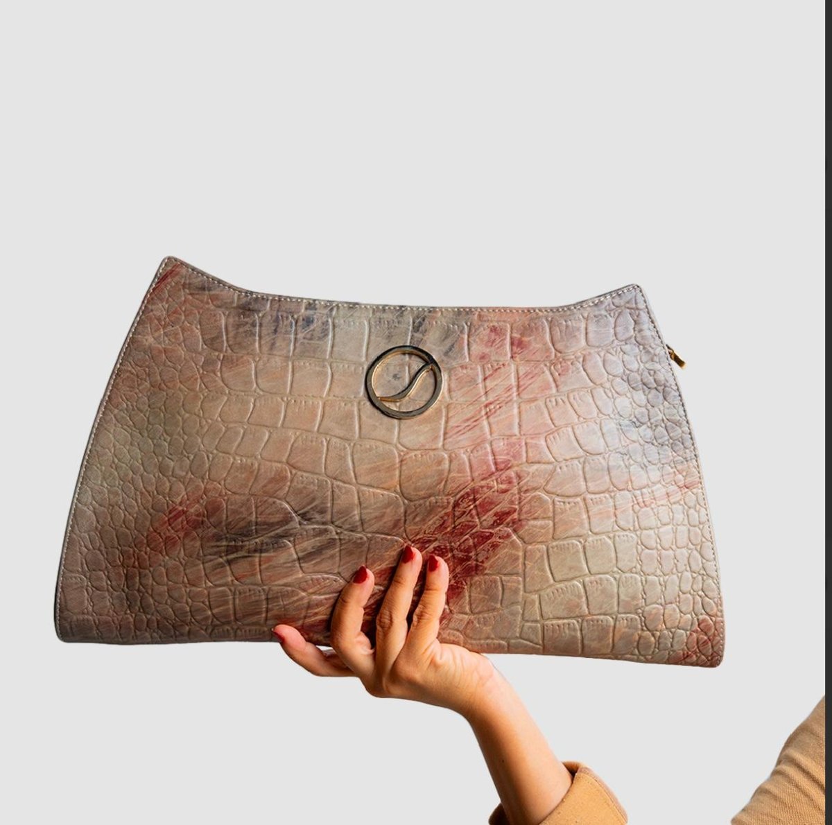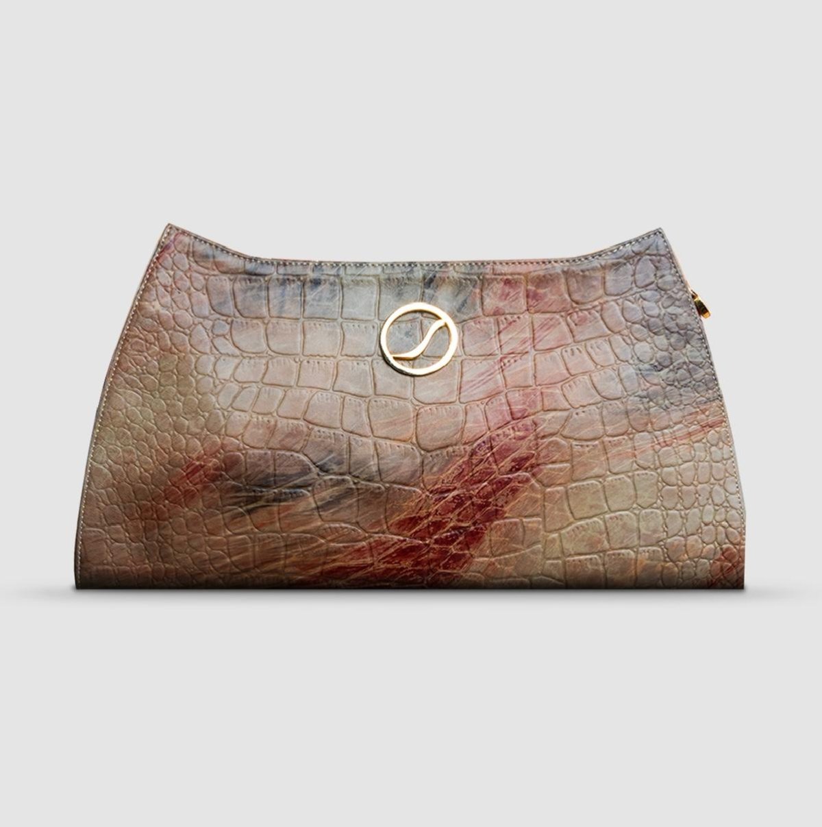 Farha clutch that brighten up any outfit. comes with shoulder strap and small pocket inside. Material: Genuine leather Colors: brownish and bluish Dimensions: 33 cm * 18 cm