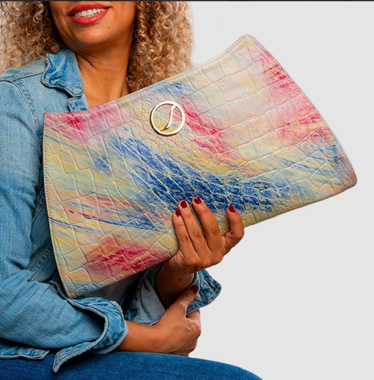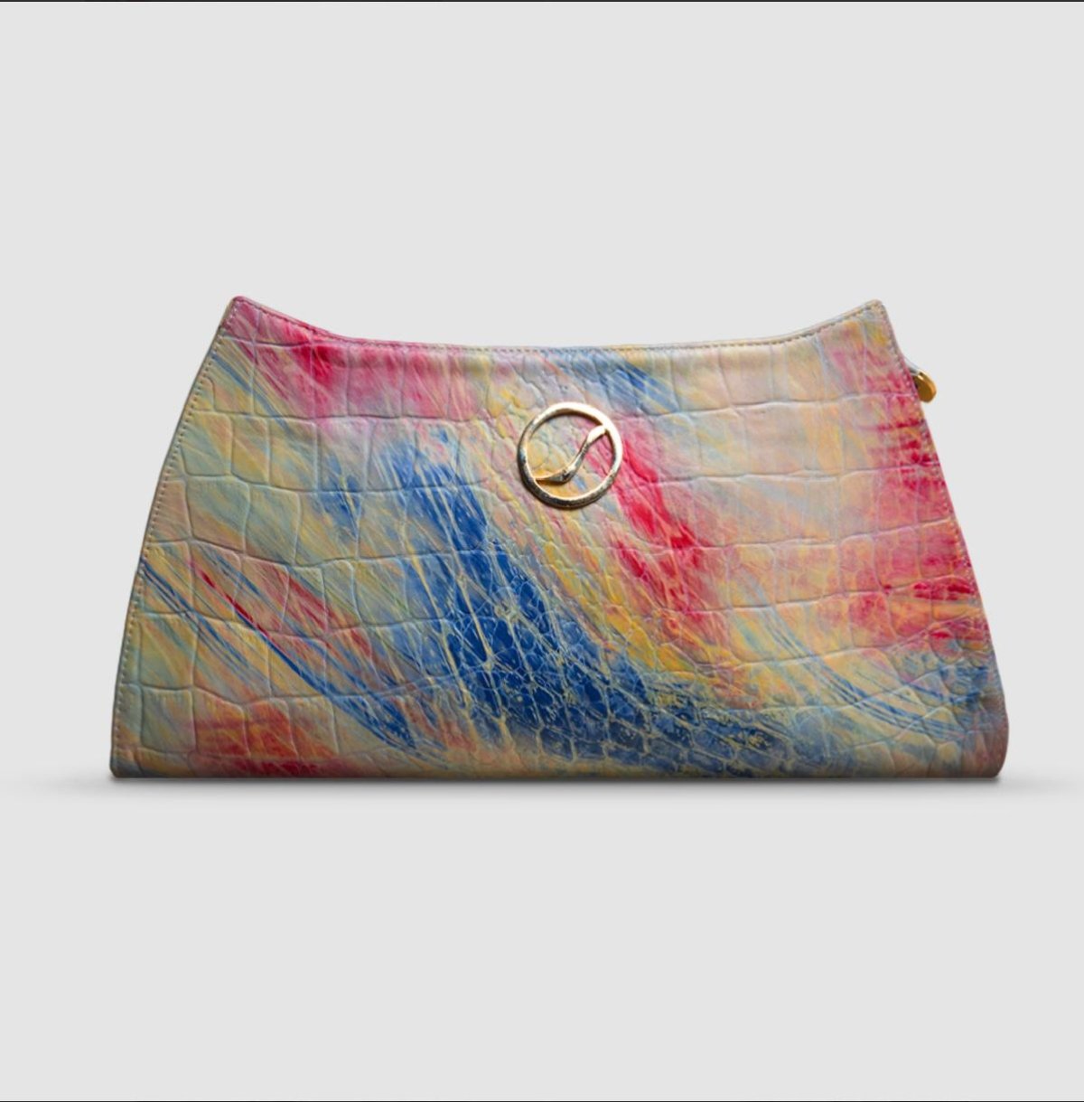 Farha clutch that brighten up any outfit. comes with shoulder strap and small pocket inside. Material: Genuine leather Colors: brownish and bluish Dimensions: 33 cm * 18 cm