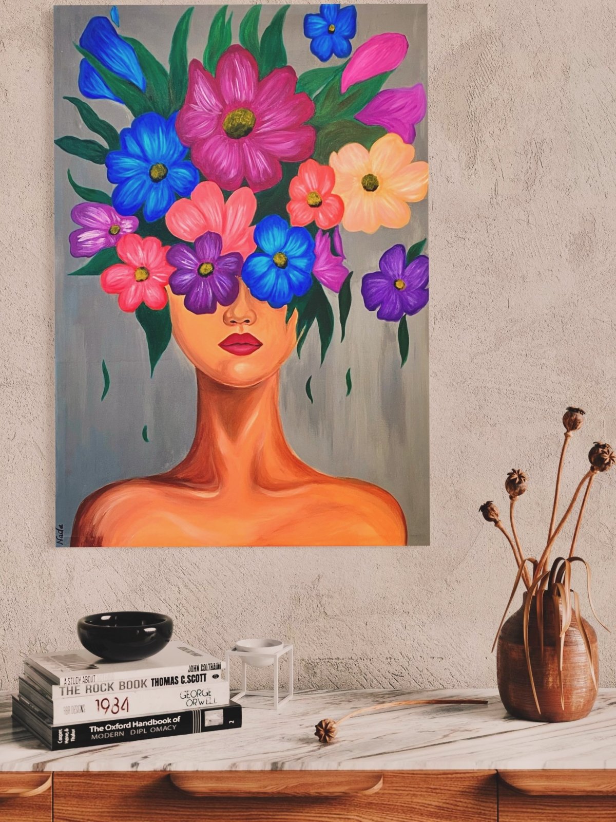 لوحة مرسومة يدوياً ب ألوان أكليريك على كانڤاس مقاس ٥٠*٧٠