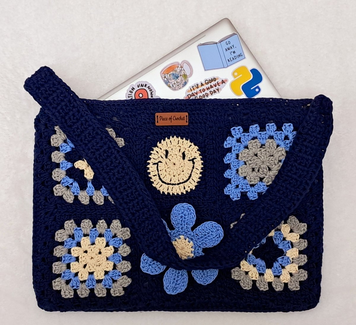 شنطة لاب توب بخيوط قطنية عالية الجودة مشغولة بموديل مربعات الجرانى المميز . الشنطة بتتشغل حسب مقاسات اللاب توب . لها بطانة مدعمه لحماية اللاب توب ولها سوستة للاغلاق . ارتفاع الشنطة ٣٢ سم عرض الشنطة ٤٥ سم طول اليد ٨٥ سم