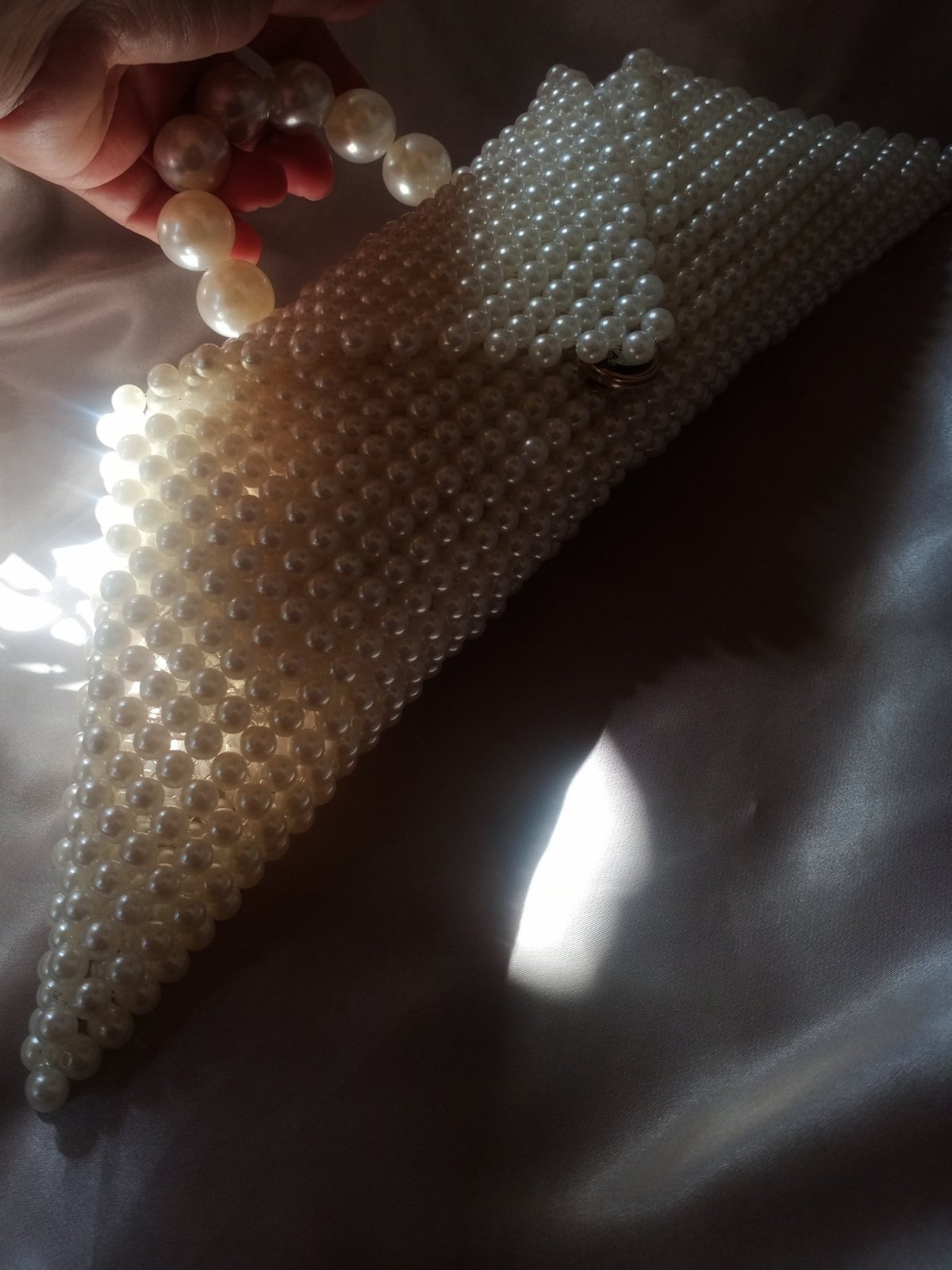 شنطه من حبات اللؤلؤ ال ccb المستورد شنطه انيقه ومختلفه مقاس ٤٠ سم تشيل فون ومذوده بدراع من حبات اللؤلؤ