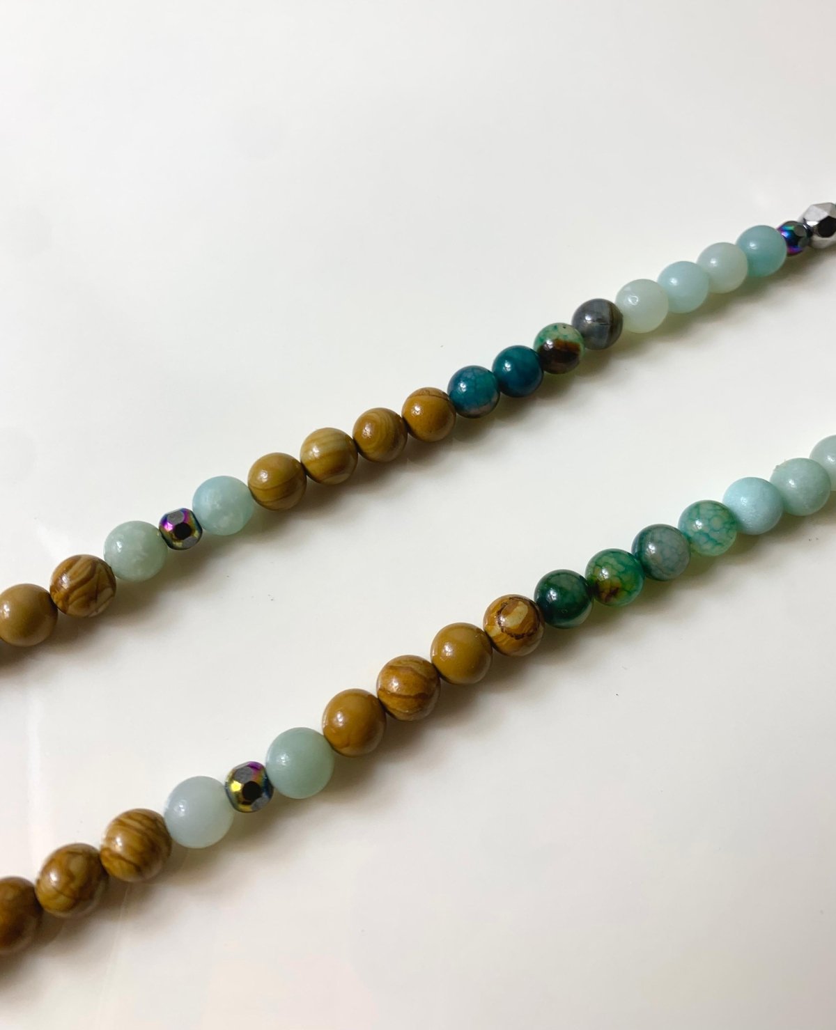 📿- مسبحة من حجر الامازونيت والچاسبروالعقيق والهيماتايت 📿- مقاس 8مم 📿- 99حبه 📿فواصل هيماتايت 📿-دلاية كوارتز 📿- مغلفة بشكل جميل في حقيبة هدايا تحمل علامتنا التجارية، مما يجعلها هدية رائعة في أي مناسبة.