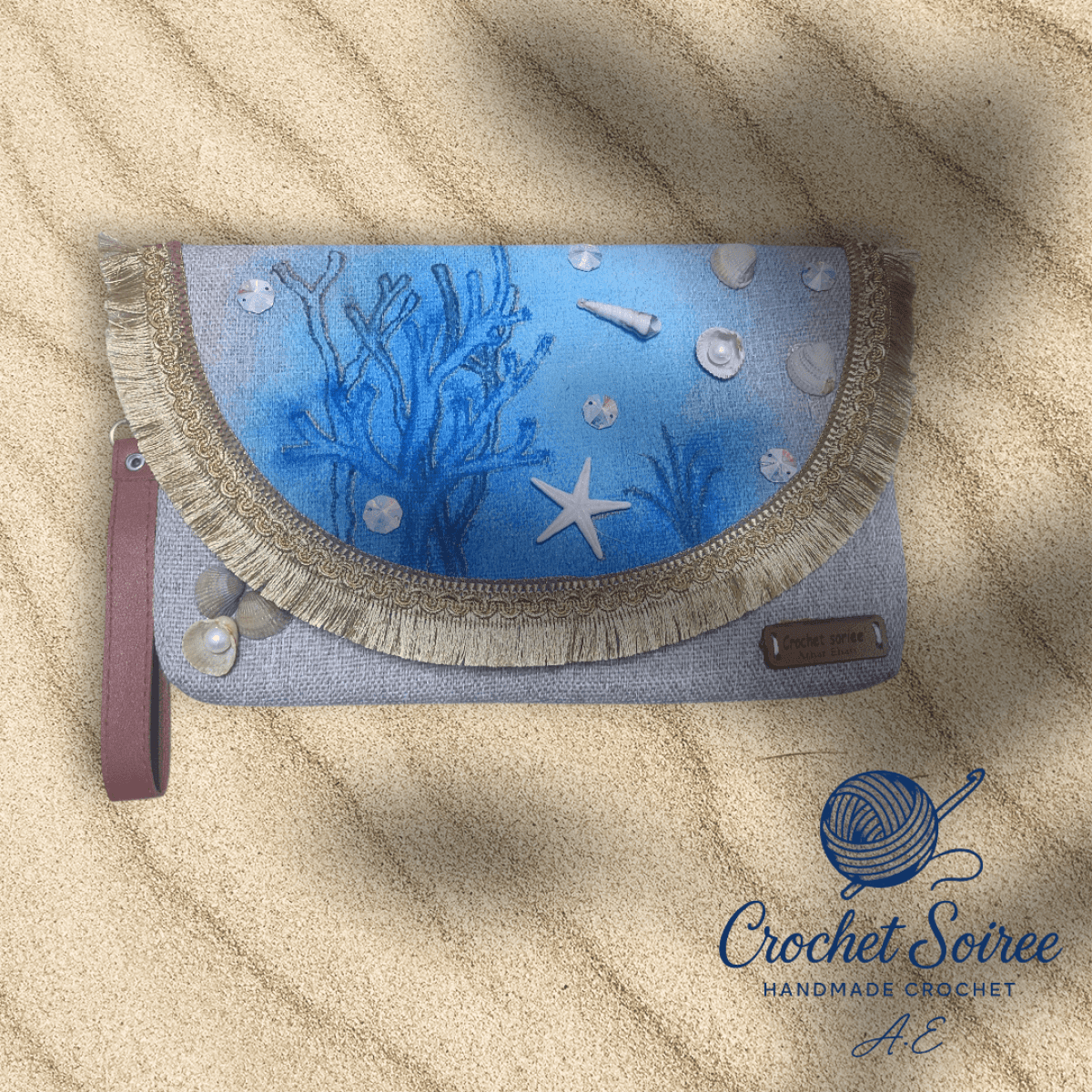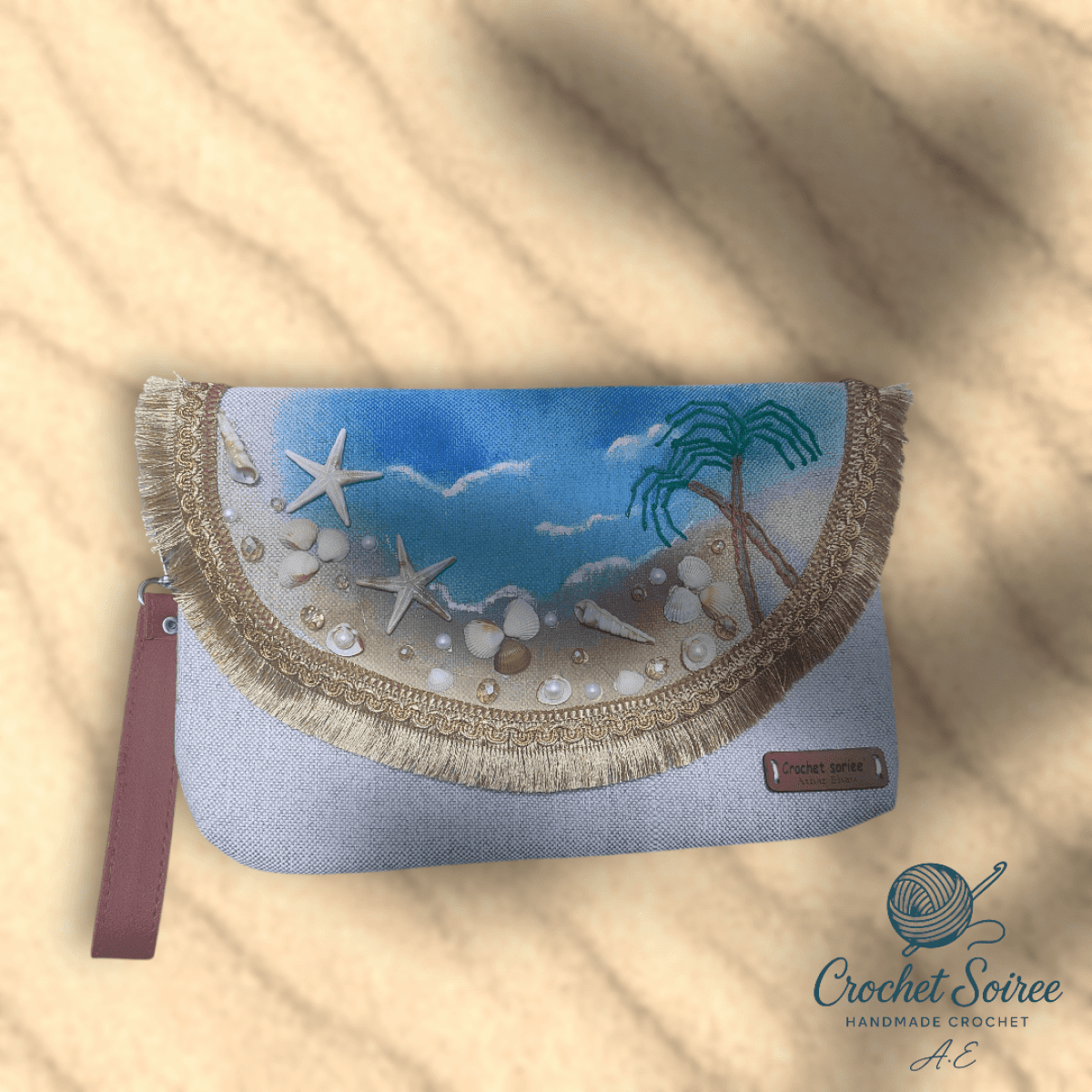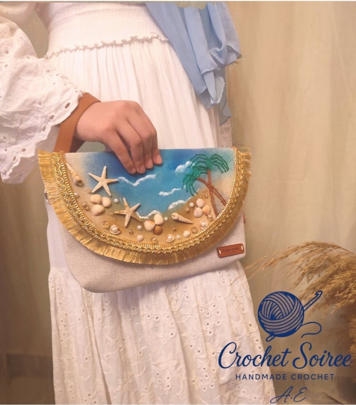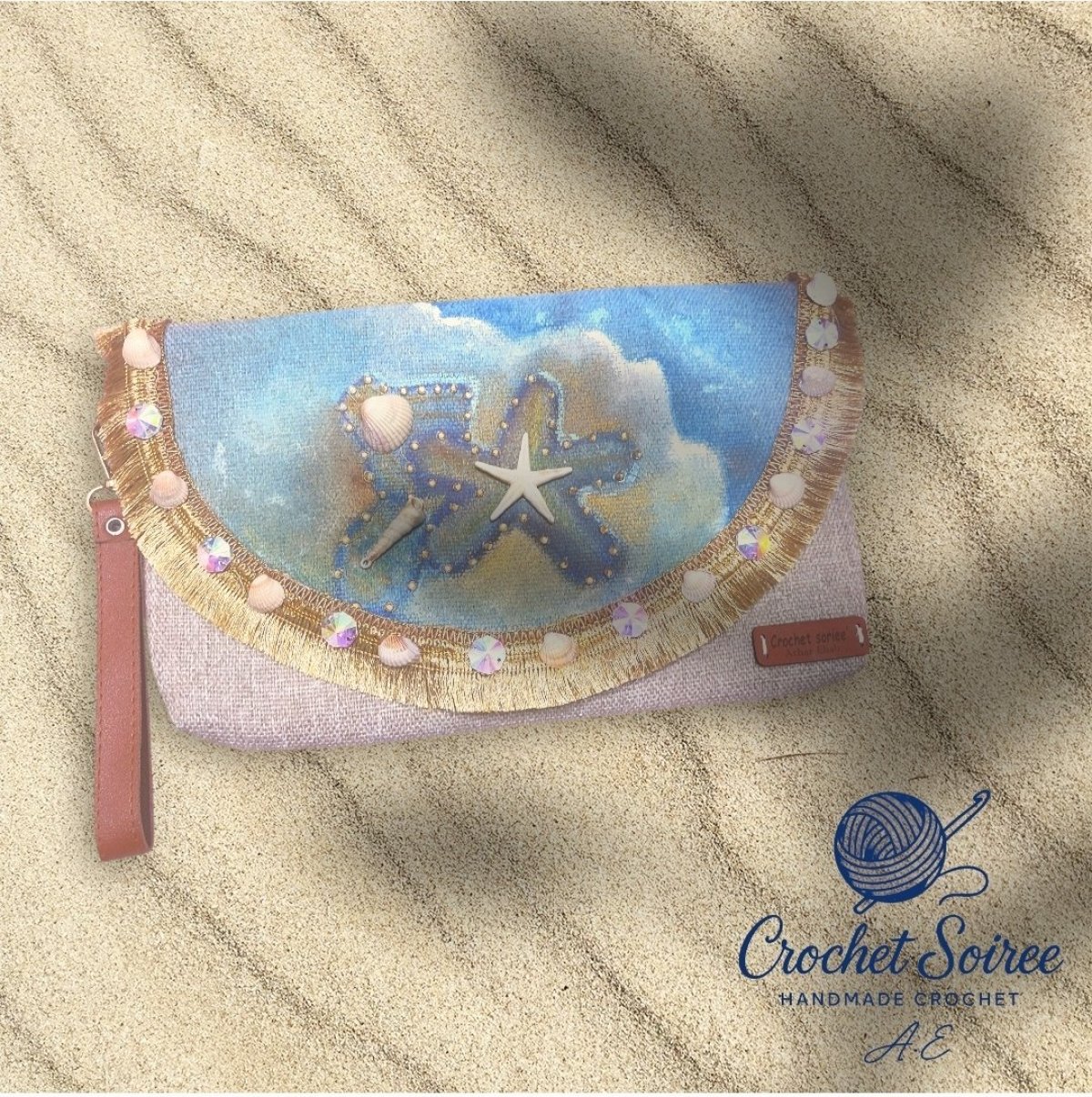 كلاتش خامة كتان بسوستة داخلية ملون ومطرز يدويا بألوان وتصاميم تناسب الصيف مقاس 20*30