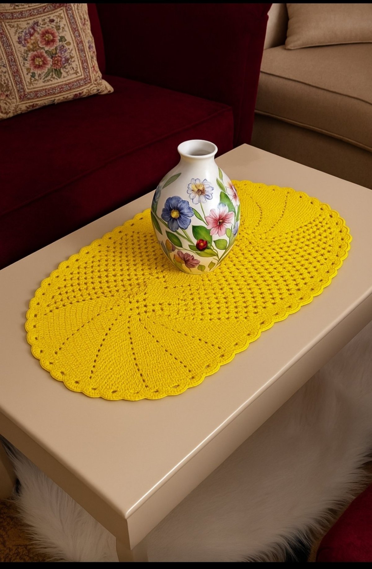 مفرش من خيوط القطن طوله 65 سنتي و عرضه 40سنتي