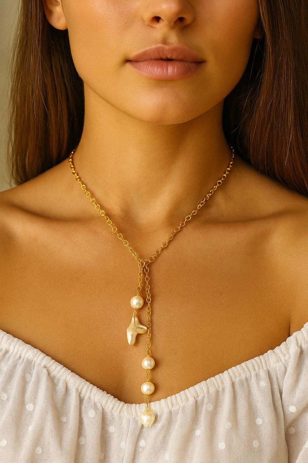 سلسله فضه مطليه دهب عيار ١٨ محلاه باحجار اللولي الطبيعي