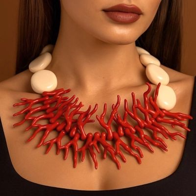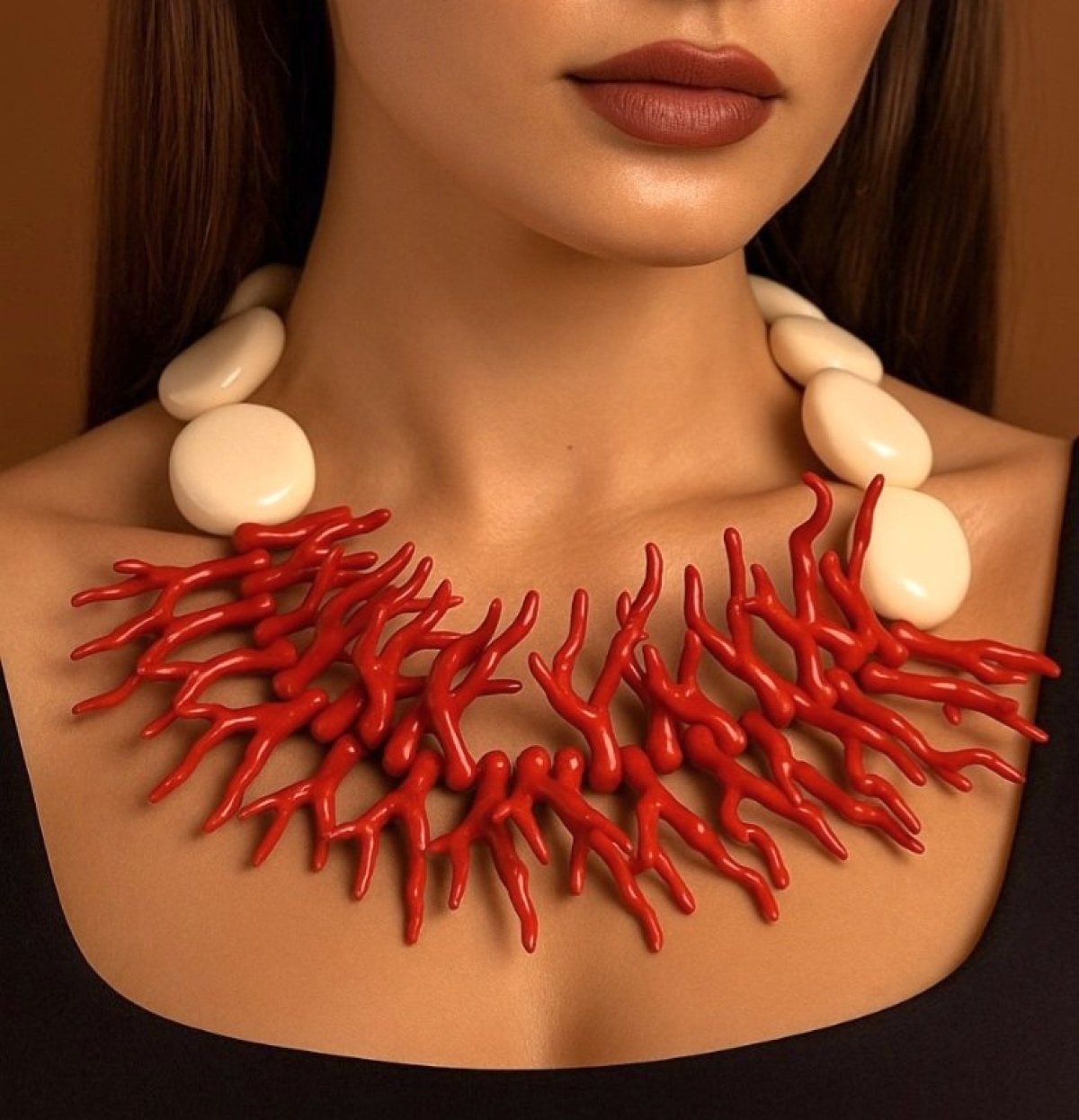 كوليه من المرجان والعاج الصناعي يضيف لمسه جمال رائعه علي ملابسك
