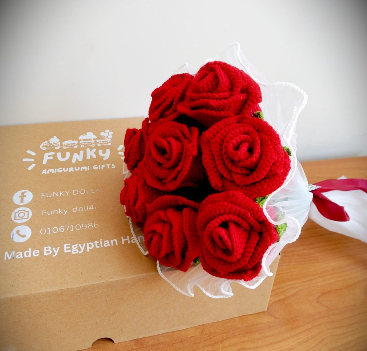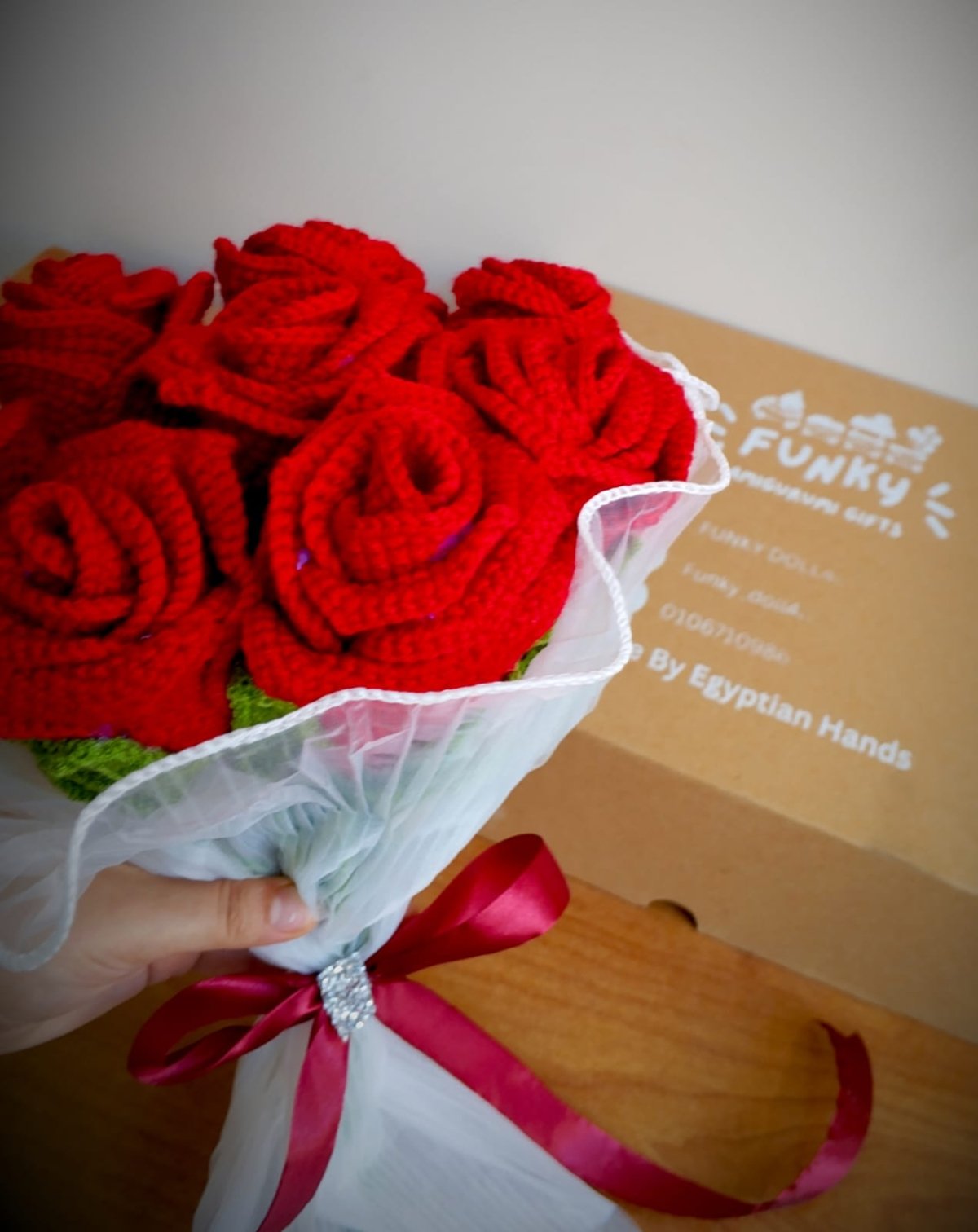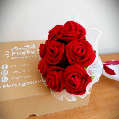بوكيه ورد أحمر مكون من ٨ وردات بالتغليف متاح تغيير الألوان