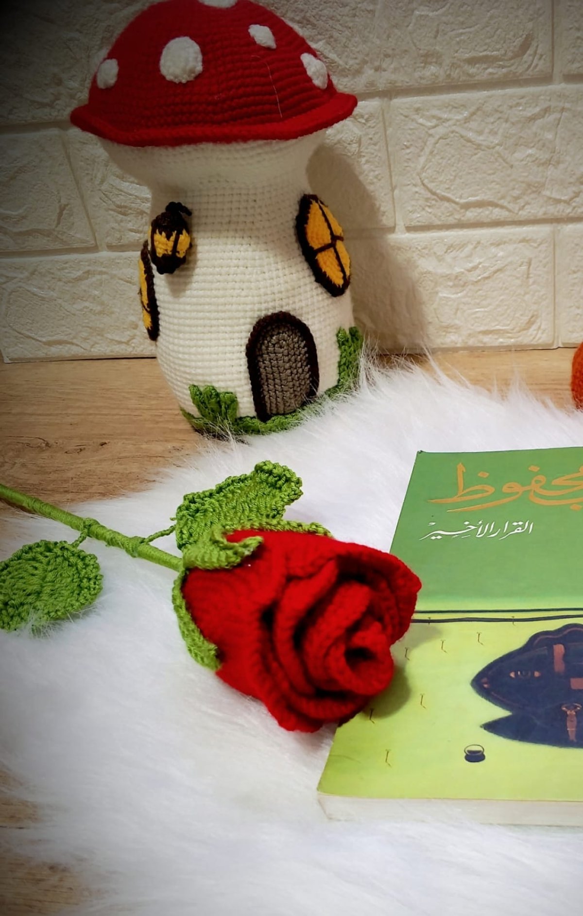 ورده حمراء مصنوعه من خيوط ضد الوبره متاح تغيير لونها و شكلها