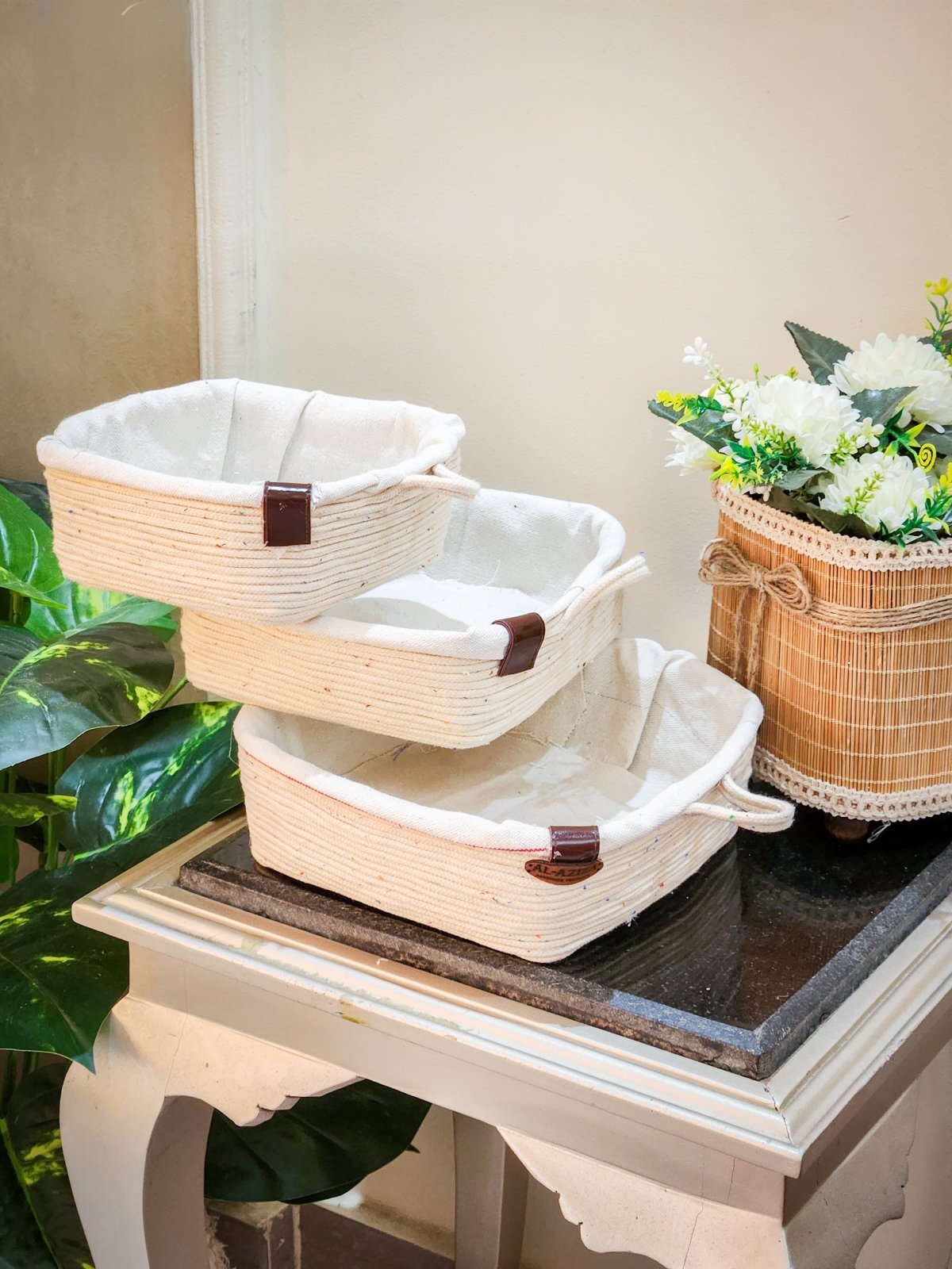 طقم سلال تخزين يدوية أنيقة من الحبل القطني إذا كنتِ تبحثين عن لمسة ديكور ناعمة وعملية في نفس الوقت، فإن طقم سلال AL-AZIZIA هو الحل المثالي! ✨ مصنوع يدويًا من الحبال القطنية عالية الجودة ✨ بطانة قماشية داخلية ناعمة تحافظ على نظافة المحتوى ✨ تصميم بسيط وراقي يناسب جميع أنواع الديكور ✨ يمكن استخدامه لترتيب أدوات الحمام، المكياج، المكتب، أو تقديم الضيافة 📦 الطقم يحتوي على 3 أحجام مختلفة (صغير - متوسط - كبير) 🎁 قطعة عملية وأنيقة لا غنى عنها في كل منزل مقاس ٦سم ارتفاع ١٦سم طول مقاس ٦سم ارتفاع ١٨سم طول مقاس ٧سم ارتفاع ٢١سم طول