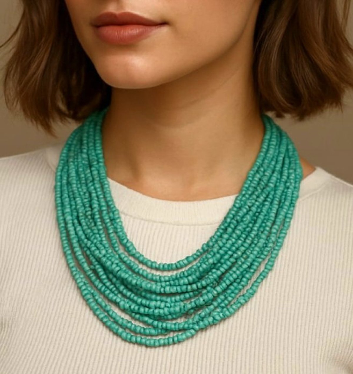 عقد متعدد الأدوار من حجر الجاد الأخضر مع الفضه