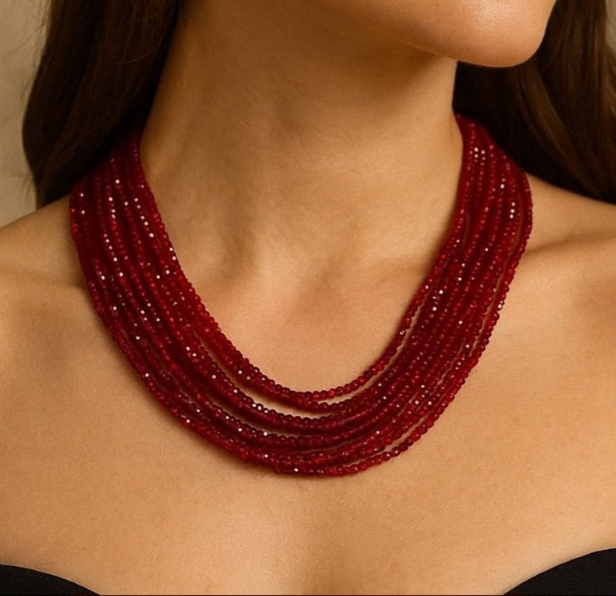 عقد متعدد الأدوار من حجر الجاد الاحمر مع الفضه