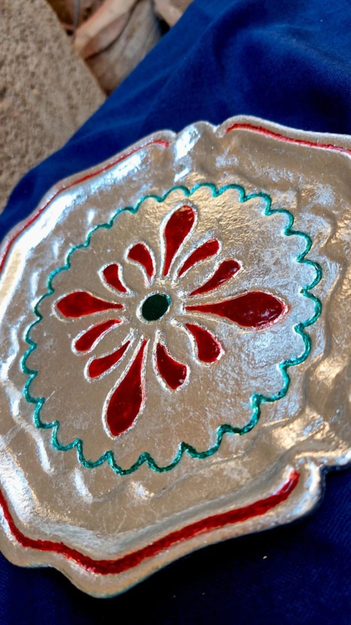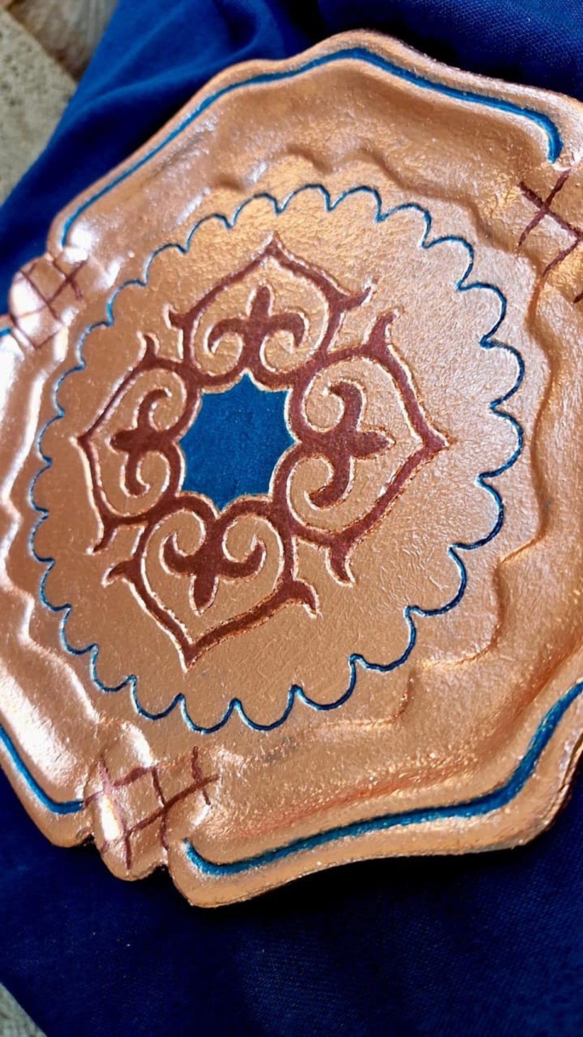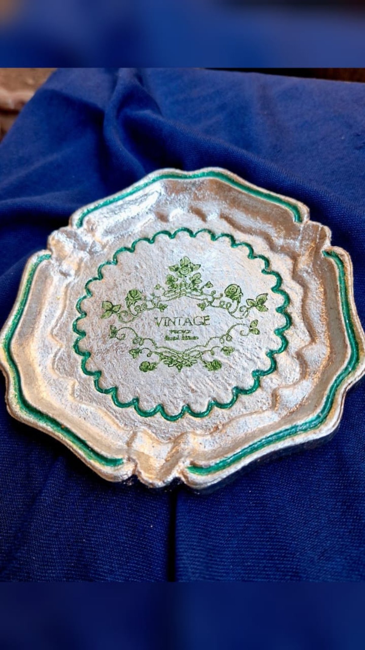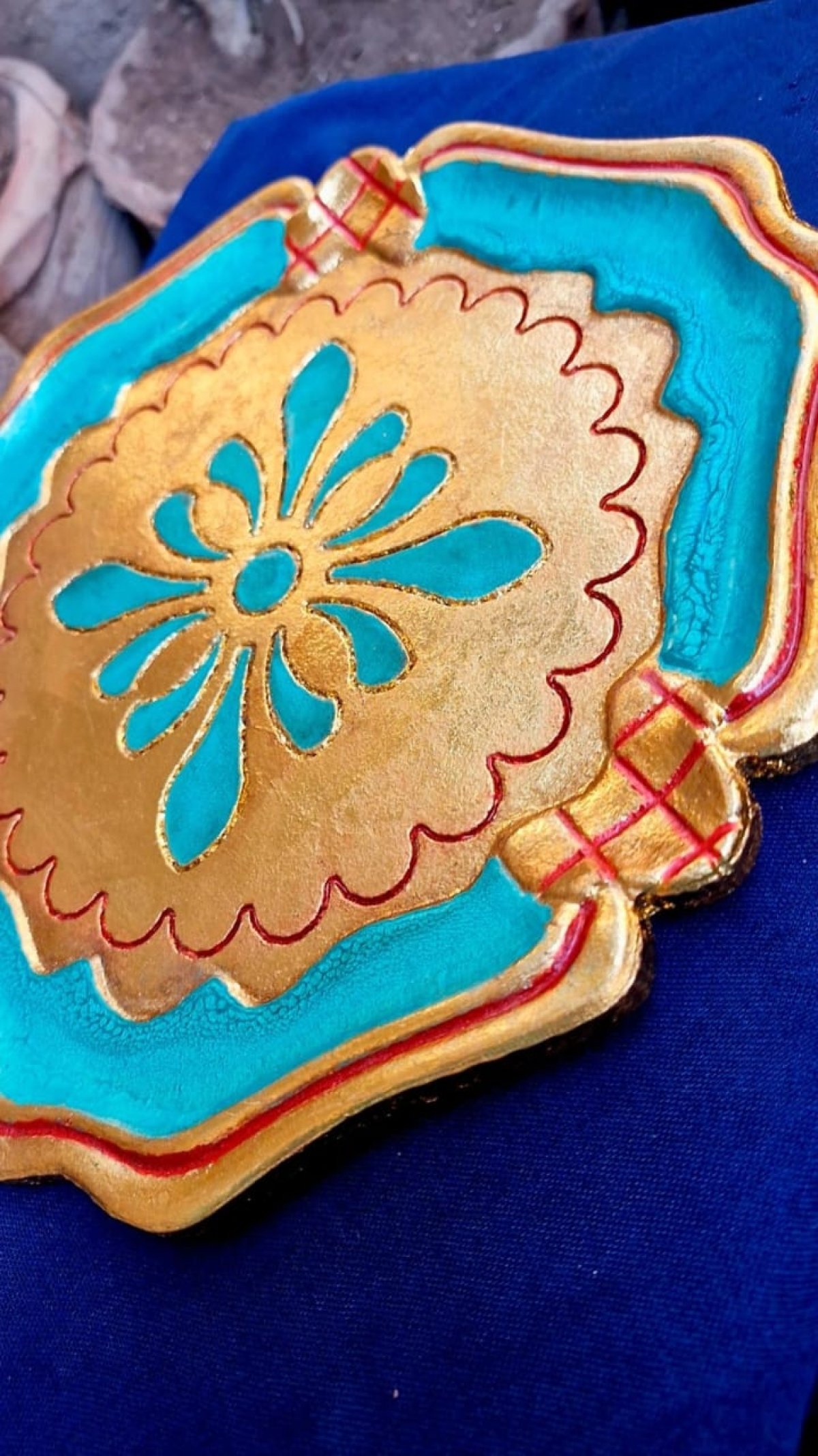 مجموعة من أطباق الفلورنتين المكونه بورق الدهب بالكامل وشغل حفر يدوي والوان مكونة يدويا ، مقاساتهم ٣٠ ،٢٥ ،٢٠ ،١٥