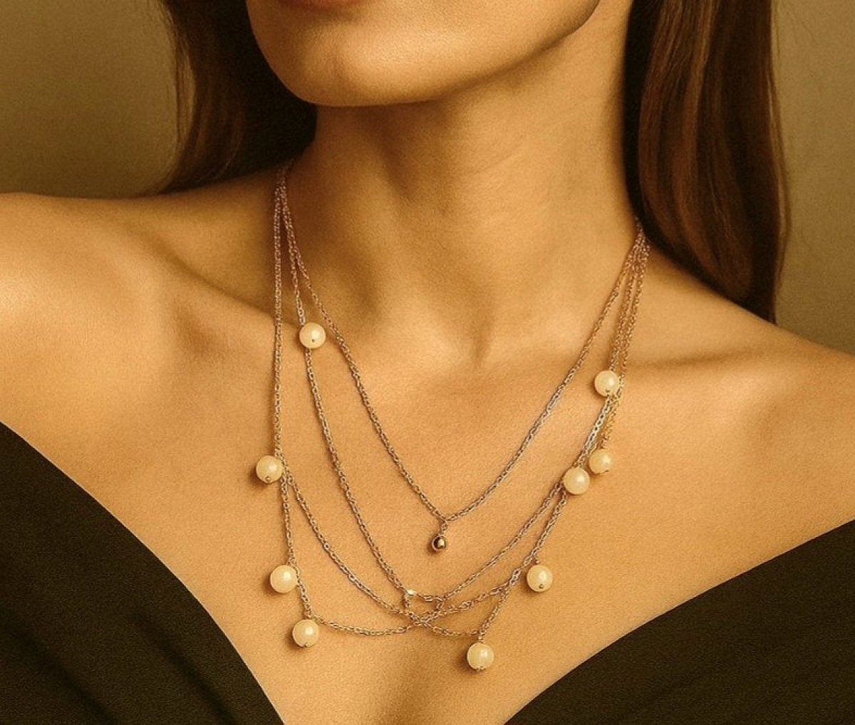 كوليه ستانلس الدهبي المتعدد الادوار المزين باحجار المرمر