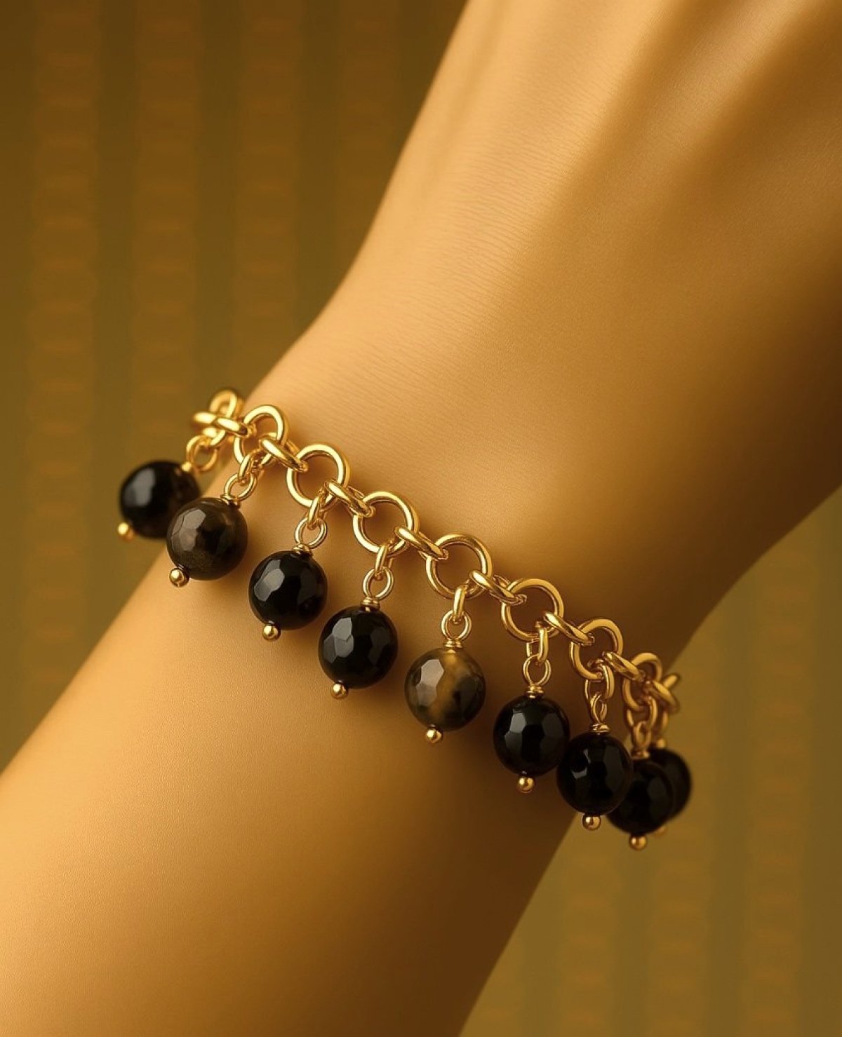 انسيال فضه مطلي دهب عيار ١٨ مزين باحجار العقيق الاسود