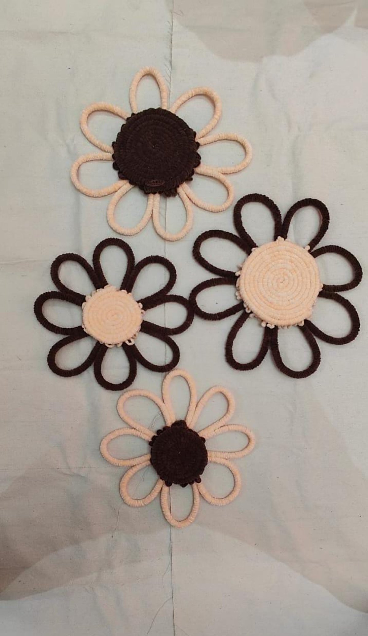 كوسترات بشكل وردة أنيقة مصنوعة يدويًا من خيوط القطن الطبيعية بألوان متناسقة (بيج وبني)، تضيف لمسة من النعومة والجمال لأي طاولة. يمكن استخدامها كحماية أنيقة للأكواب أو كديكور مميز للمائدة أو الطاولات الجانبية. الطقم يتكوّن من 4 قطع، مثالي للمناسبات أو كهدية فريدة لعشاق التفاصيل الراقية.