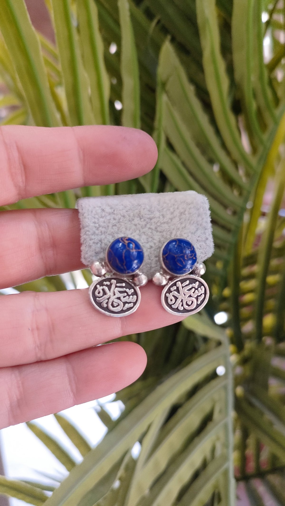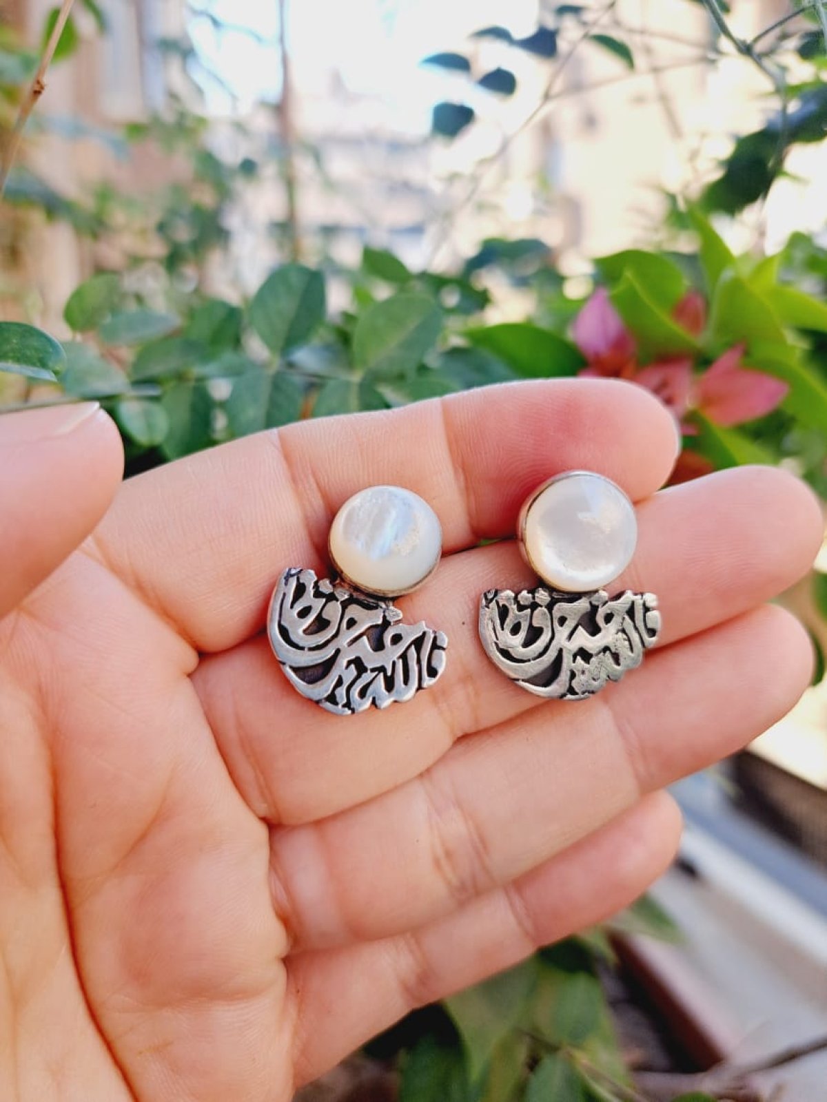 حلق فضة عيار ٩٢٥ مع حجر صدف و متاح تغيير الحجر