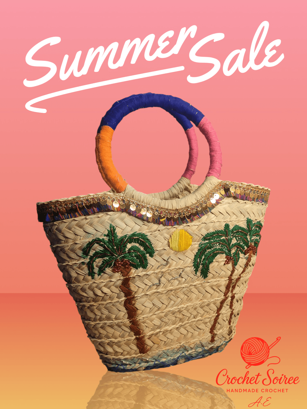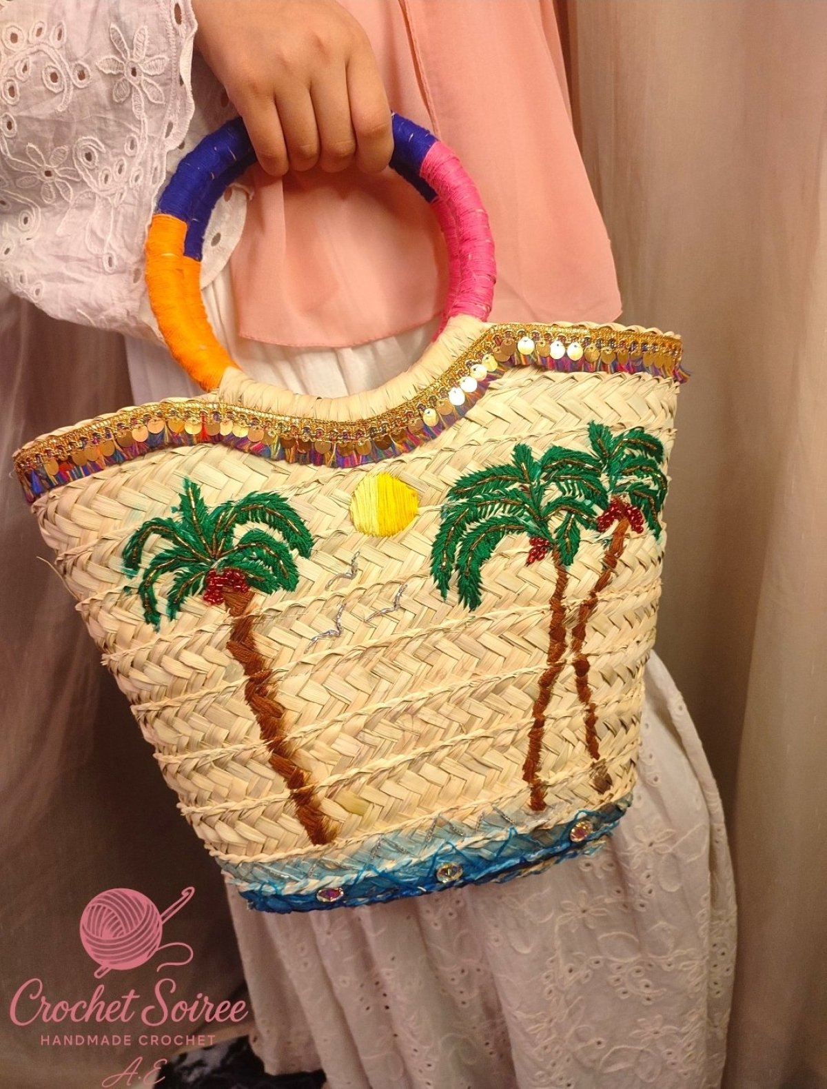 شنطة خوص مطرزة يدويا ومبطنة من الداخل مقاس 35*30
