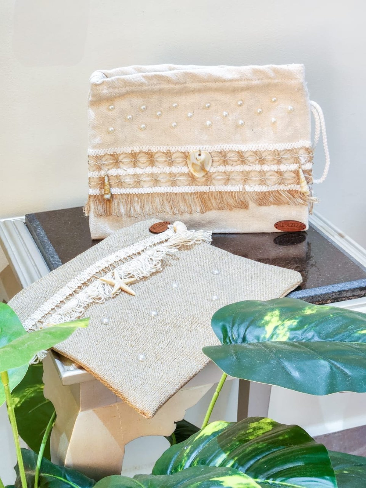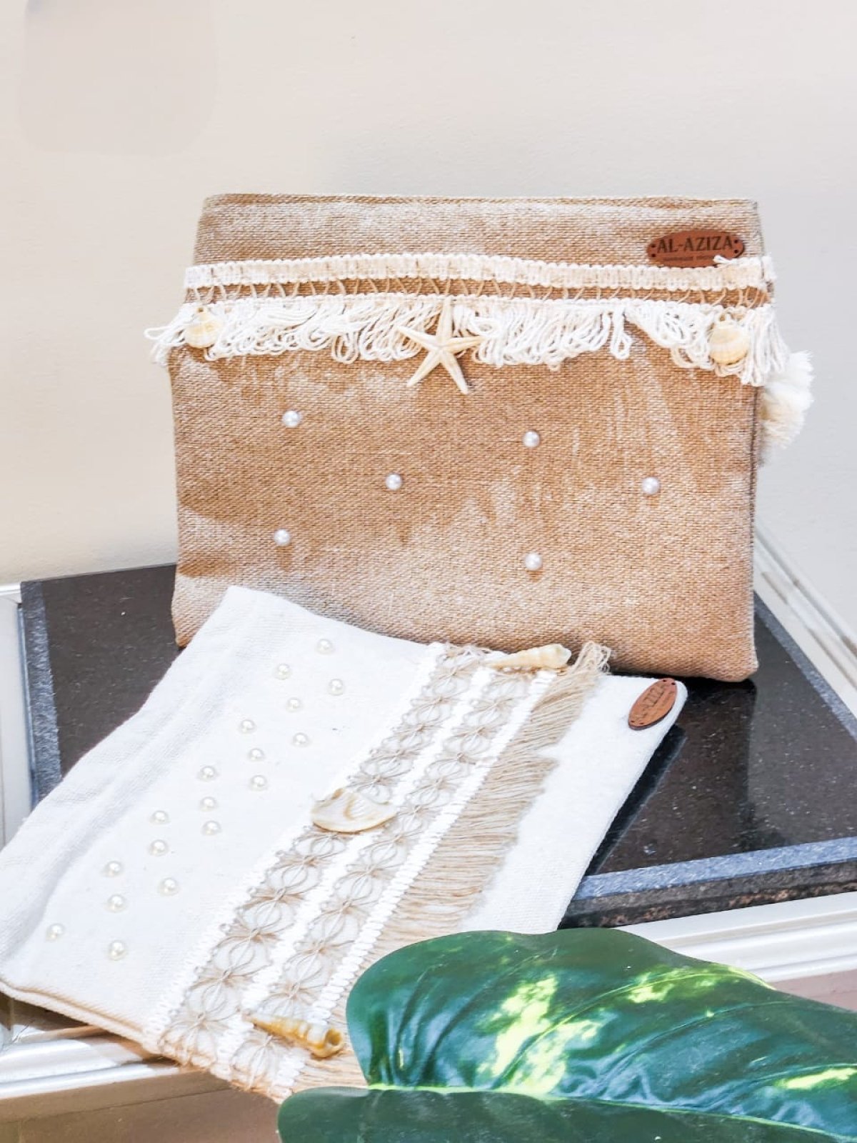 كلاتش عملي وأنيق بسوستة علوية للإغلاق، مصنوع يدويًا بعناية من خامات طبيعية مثل القطن أو الخوص، ومزين بلمسات فنية مثل الأصداف أو الخرز أو الشرّابات. مثالي لحمل أساسياتك اليومية مثل الهاتف، المحفظة، والمفاتيح، سواء في الطلعات السريعة، على البحر، أو كجزء من إطلالة صيفية ناعمة. خفيف، سهل الحمل، ويجمع بين البساطة والذوق العالي.