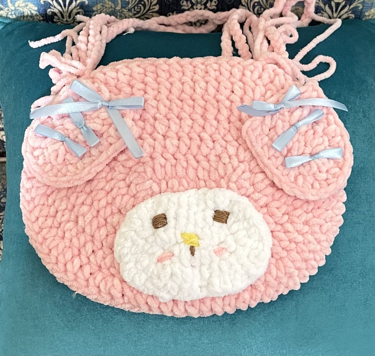 شنطة رقيقة من خيط القطيفه مزردة بسوسته للغلق و بطانه داخليه و ٢ حزام قطيفة صغير و حزام طويل من القطيفة العرض ٣٠ سم والطول ٢٤ سم