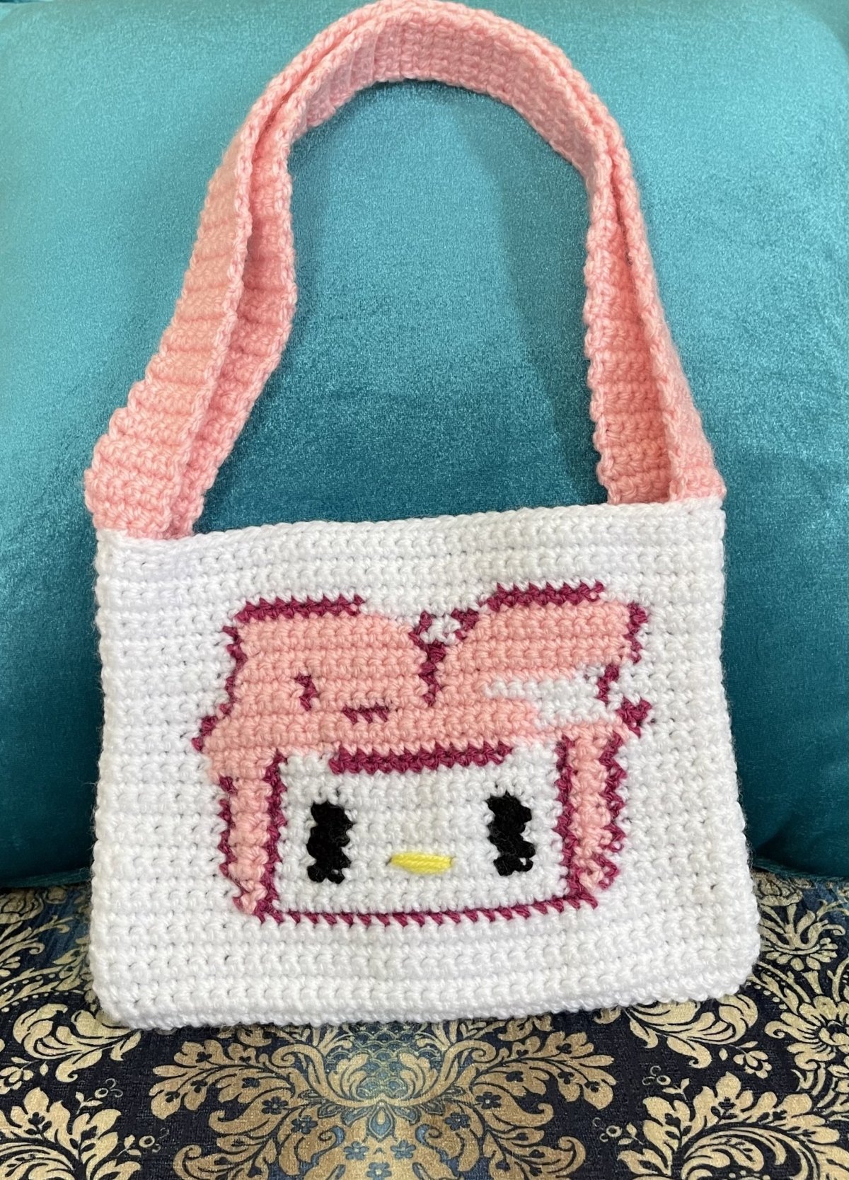 شنطة كروشية برسمة مميزة رقيقة جدًا مزودة بسوستة للغلق العرض ٢٣سم و الطول ١٧سم