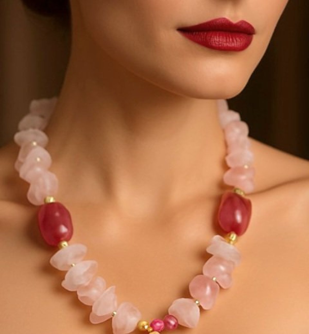 كوليه من العقيق الكسر الروز كوارتز مع احجار العقيق الوردي