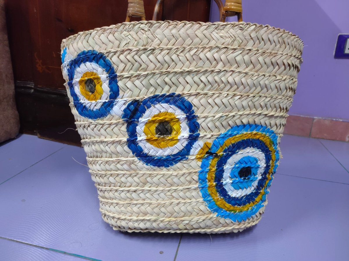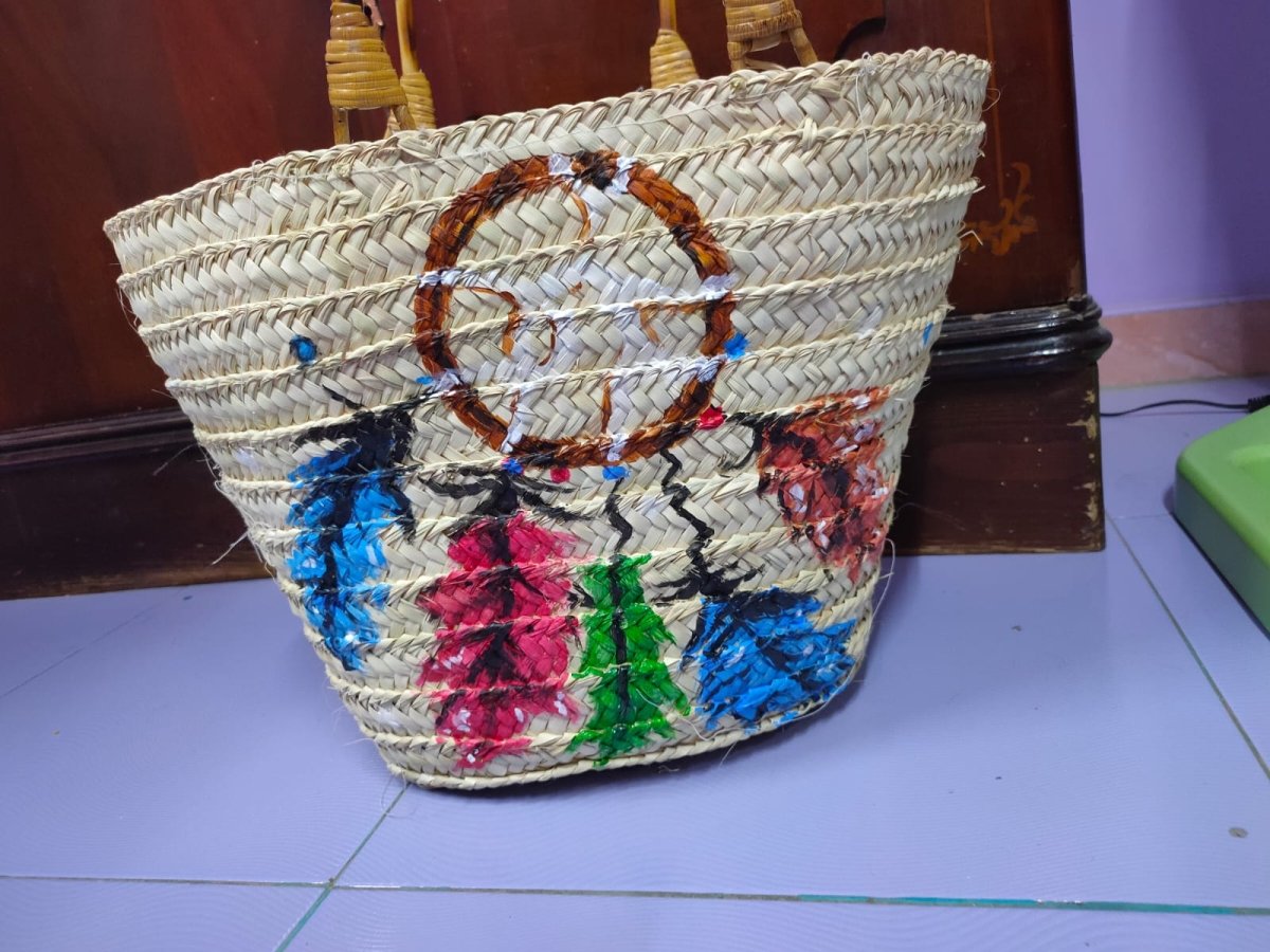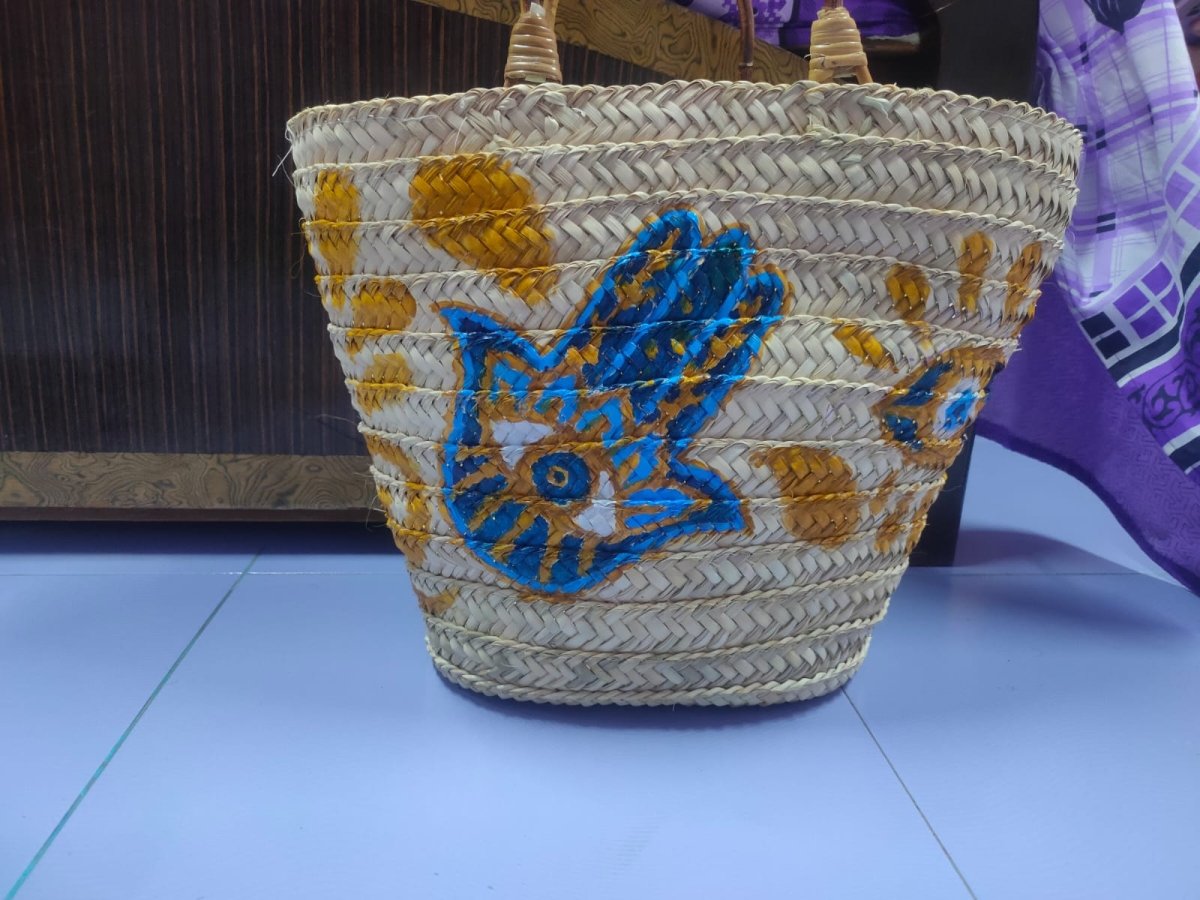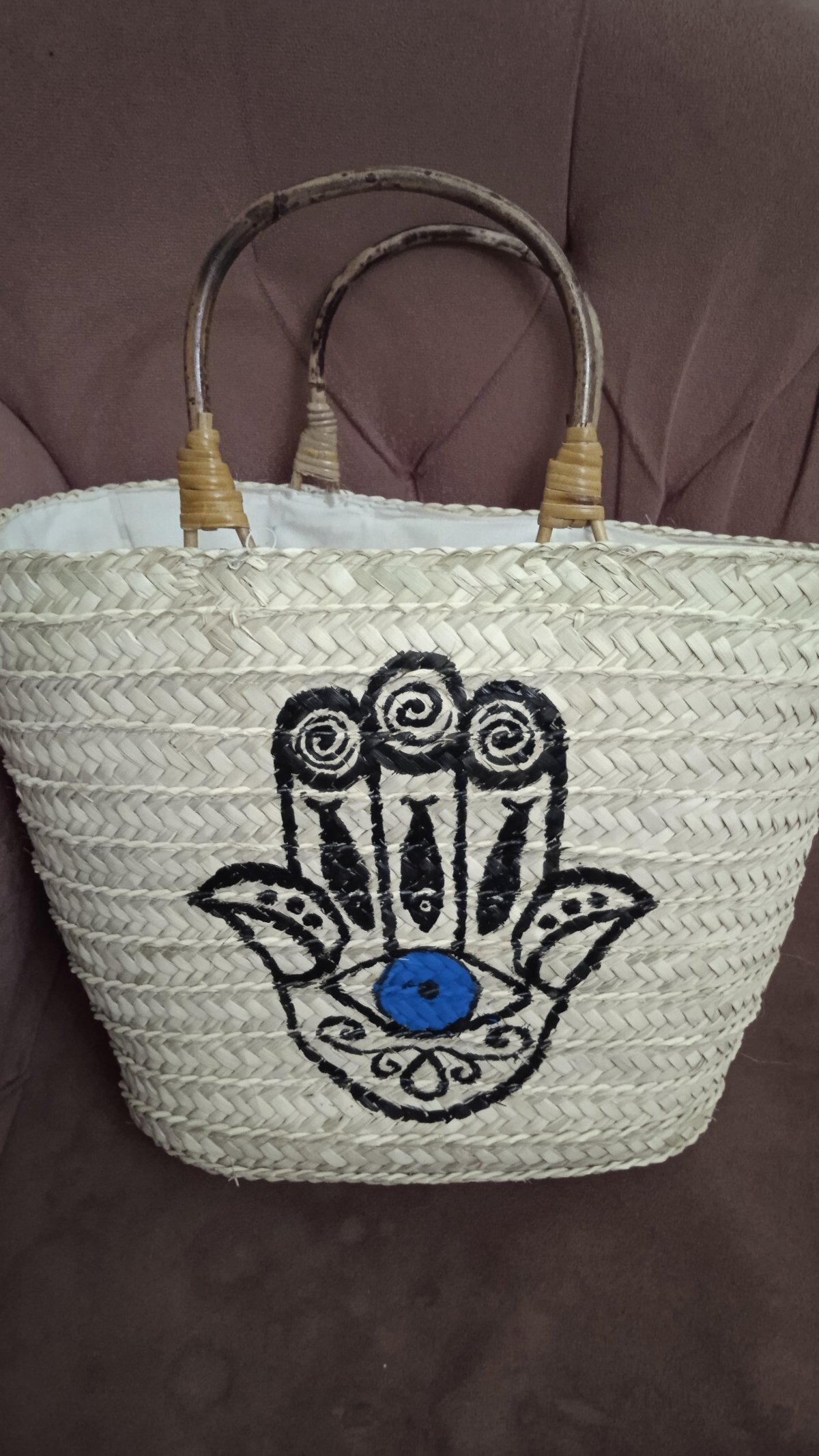 شنطة خوص مبطنة من الداخل رسم يدوي ألوان ثابتة